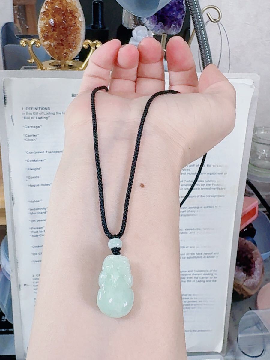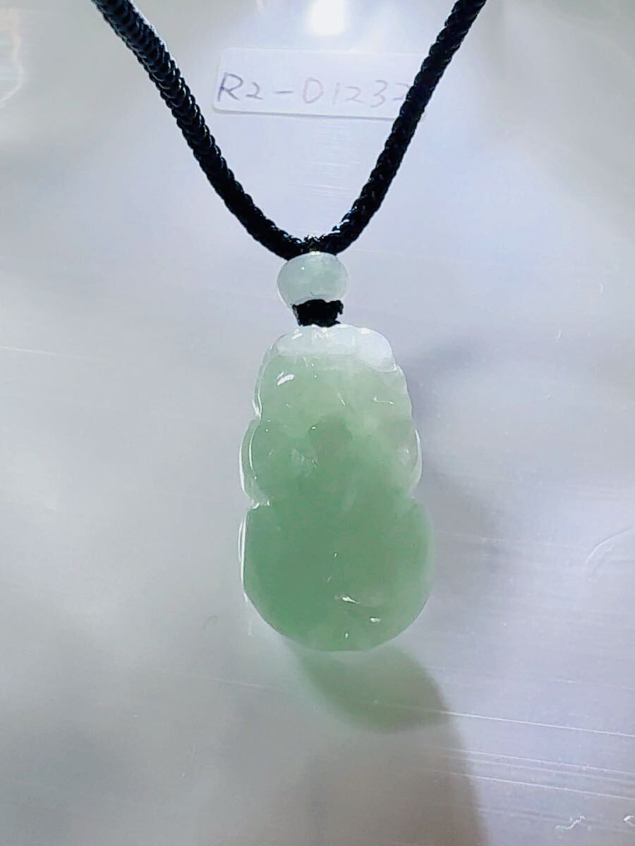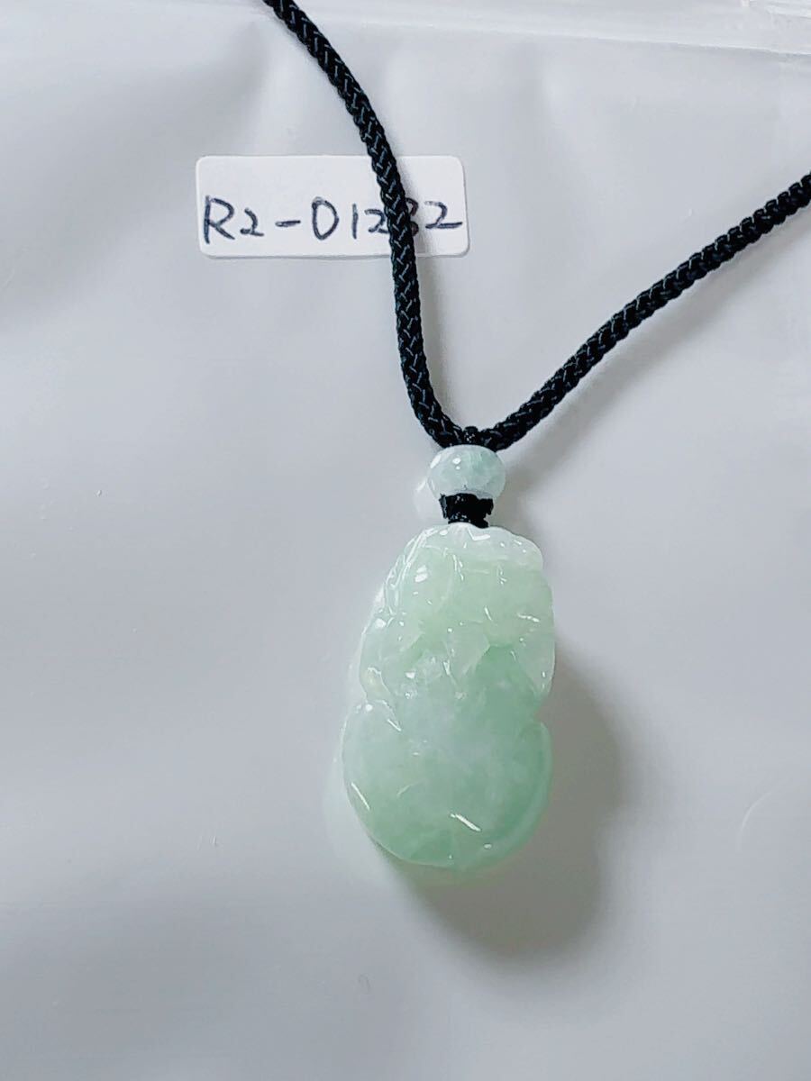 R2-01232天然本翡翠《本物保証》 淡緑色翡翠 貔貅 ペンダント 一点物 魔除け 昇進 成功 風水 金運 財運 幸運 幸福 縁起物 パワーストーン