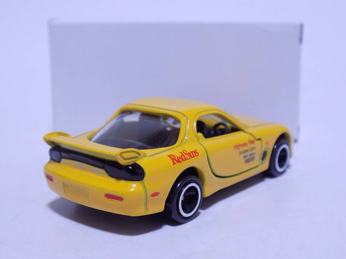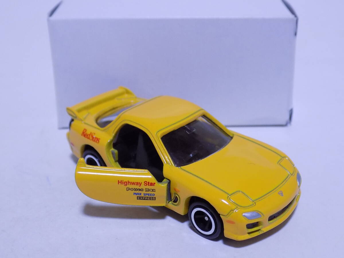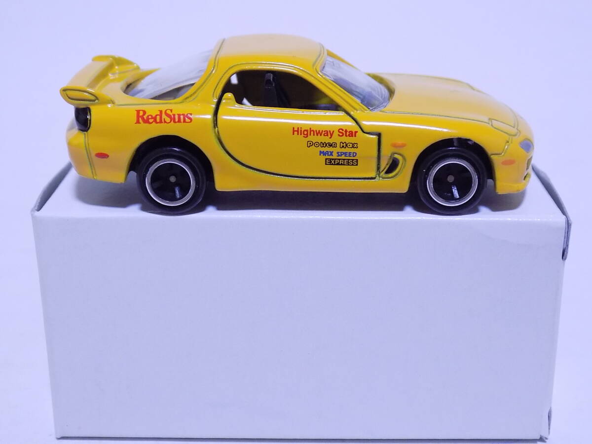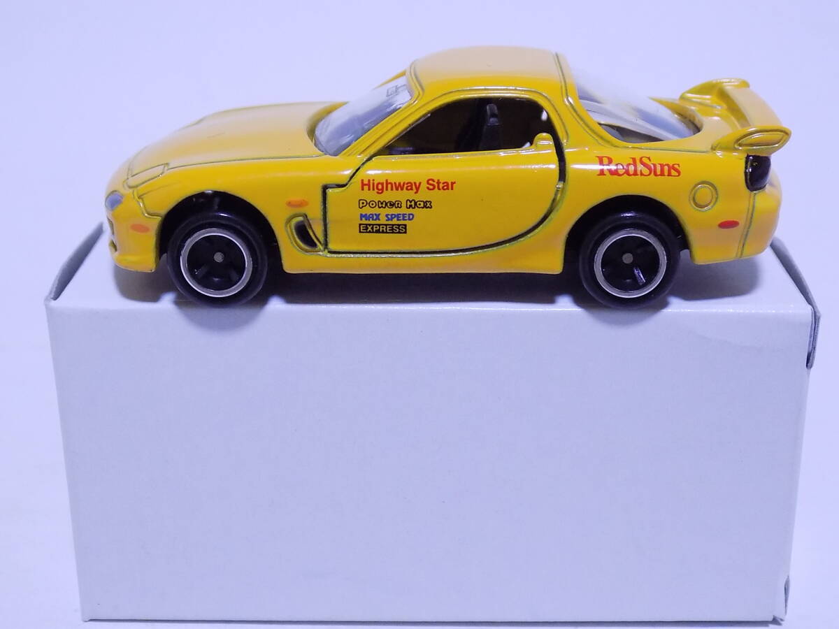 商品説明イニシャルD コミックトミカVol.4 トミカ 94-? マツダ FD-3S RX-7  ボディカラーは、イエロー シート ブラック。車体両サイドに、Red Suns 両ドアに Highwai Star. Powcr Mox.MAX SPEED.EXPRESS.タンポ印刷。キズ チップ等も無く塗装の乗りもよく綺麗です。2Gワイド ホイール装着車。MADE IN CNINA(中国製) 未使用。