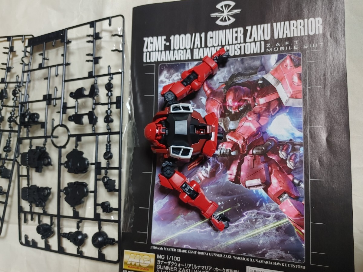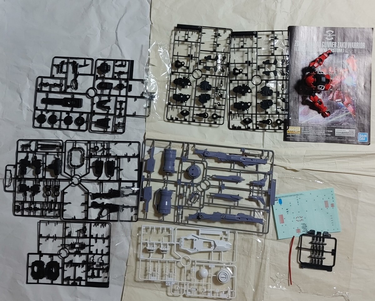こちらは画像のものがすべてです。間違いなければ、ザクウォーリアの上半身のみ組立られているようです。説明書を見る限りでは欠品はなさそうですが、見落としがある可能性もありますので、ジャンク扱いでお願いします。