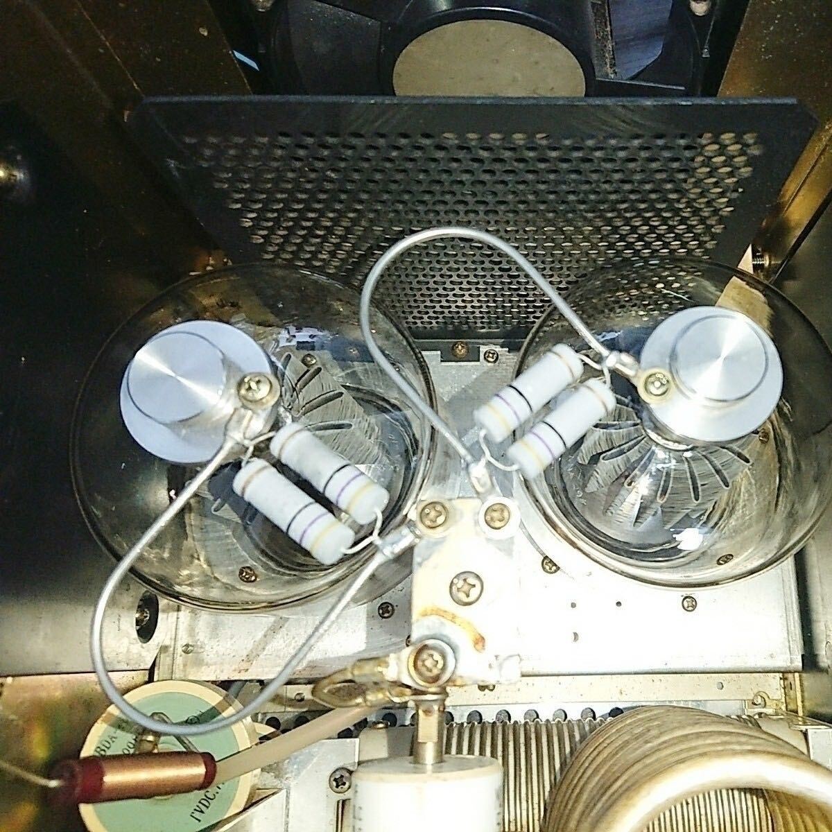 KENWOOD (TORIO) TL-922 リニアアンプ用のパラスティック・サプレッサ3-500Zペアー管用2個一組の出品です。AWG12 直径約2mmの NiChrome線 (ニッケル80%、クローム20%) を使用しています。純正のパラスティック・サプレッサは155MHz付近に同調点があり、ここで寄生発振を起こす可能性があります。この商品は Low VHF-Q の特性によって、多くの方が経験されている、寄生発振によるスパーク音、送信管のフラッシュ、ツェナーダイオードの短絡、グリッド用RFCの焼損、バンド切り替えスイッチの溶融等の障害を予防する効果があり、リニアの寿命を伸ばすことが出来ます。時々スパーク音の聞こえるアンプをお持ちの方や、長く安心してアンプをお使いになりたい方は是非ご利用下さい。