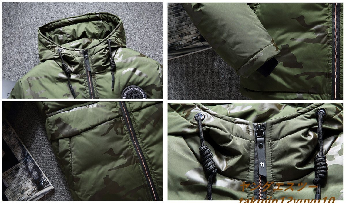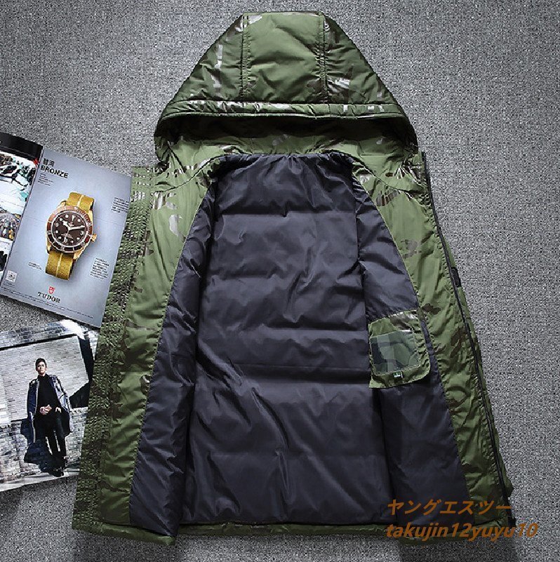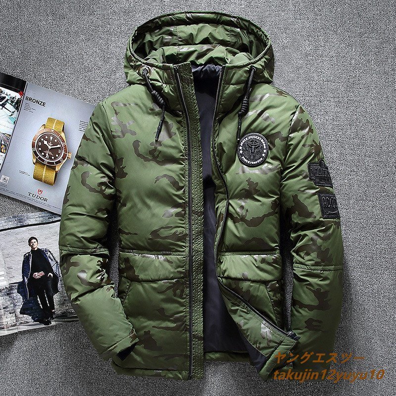 新品特売 メンズ ダウンジャケット 冬 スキーウェア ダウンコート 正規品 ワッペン付き 迷彩柄 ブルゾン アウトドア 防風防寒 オリーブ XL