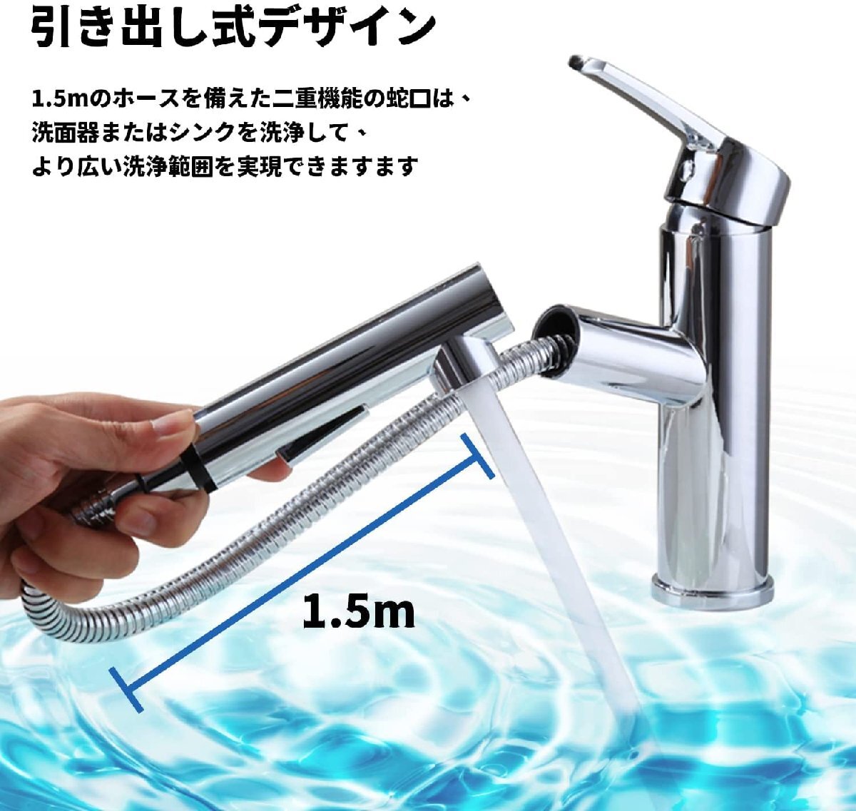 ブランド:MEOMERカラー:クロム【高品質の素材】洗面台のホース引き出しの蛇口は、健康で安全で、長期間の使用に適しており、変形しにくい注ぎ口を除いて、純銅の固体素材で作られています。