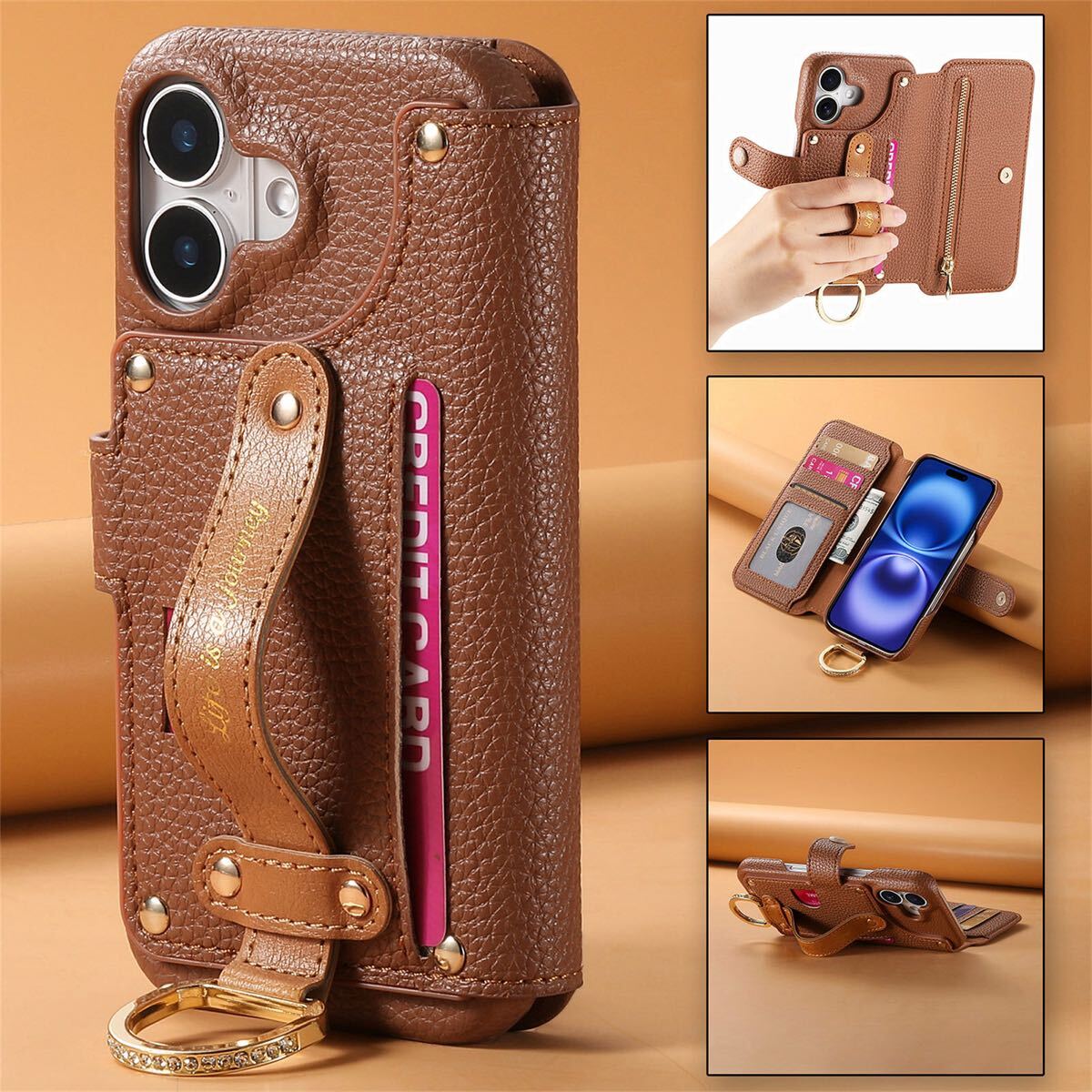 ブラウン iPhone17 用ケース 手帳型 RFID磁気防止 スキミング防止 カードポケット 落ち着いた色 横置き機能 高級PU 気質 全面保護
