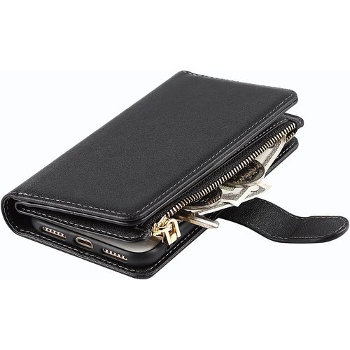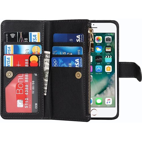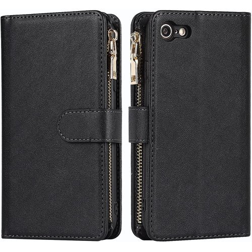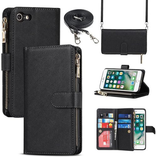 Pelanty for iPhone 7/8/SE 2022 第3世代 縄掛けケース 手帳型 携帯カバー 肩掛け首かけ斜めがけ ショルダー 合成皮革+TPUケース マグネット iPhone SE 2020 第2世代 財布型カバー ICカード お札入れ小銭入れ大容量 収納ポケット スタンド機能 アイフォンSE2/SE3/7/8 ストラップ付き 落下防止 耐衝撃 全面保護 肩縄付き-ブラック 180