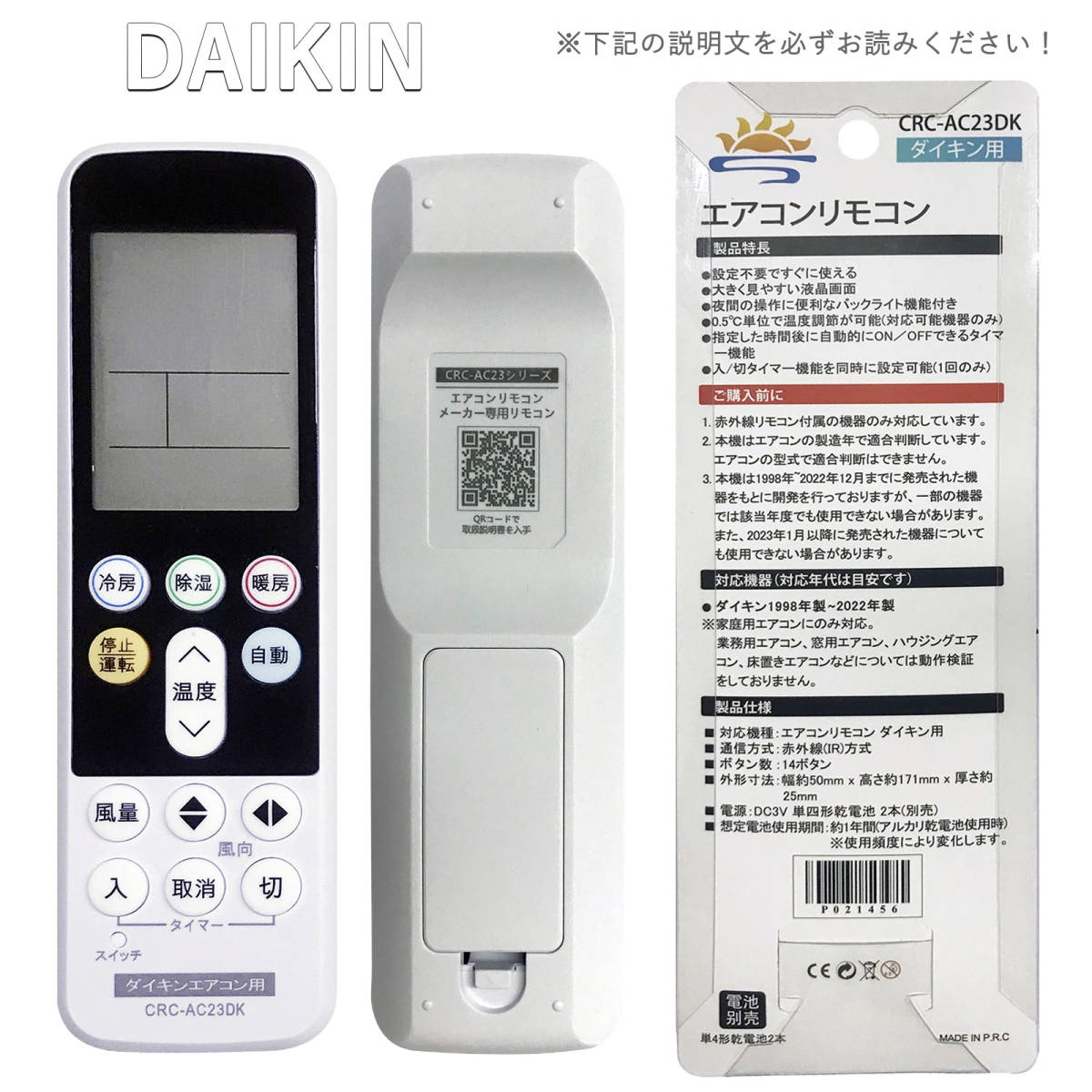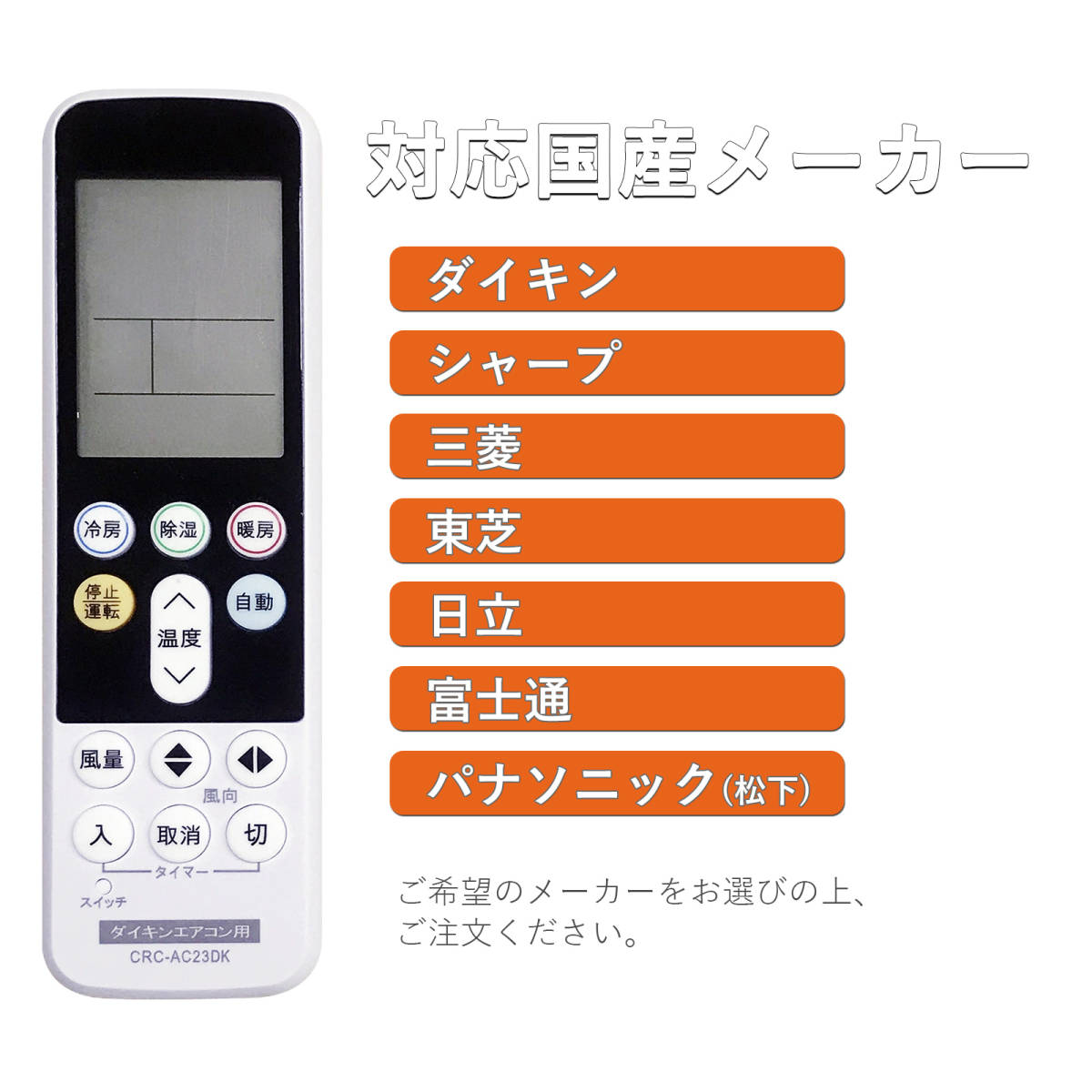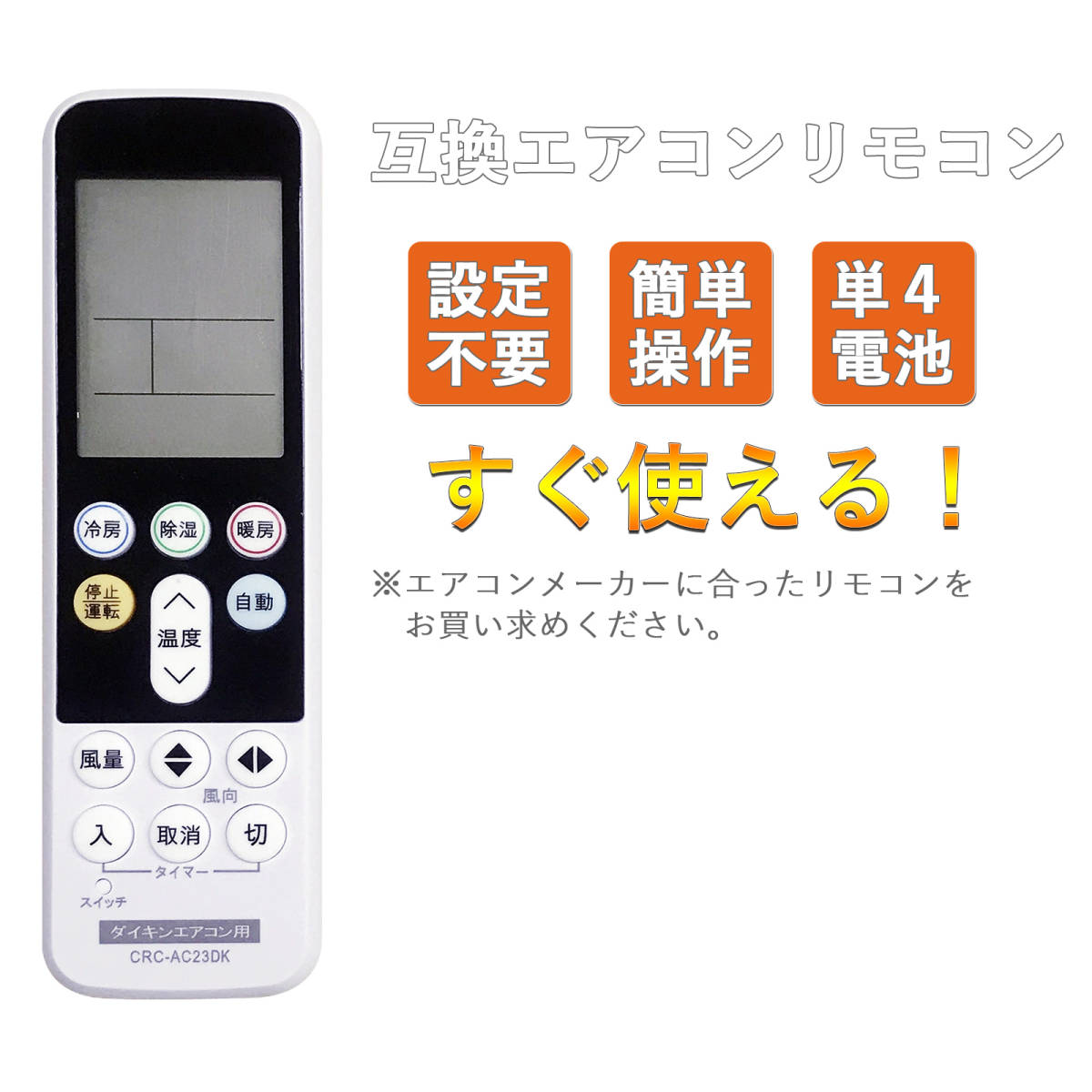 エアコン用赤外線汎用リモコンです。単4乾電池2本(市販の乾電池を別途ご購入下さい)で動作いたします
