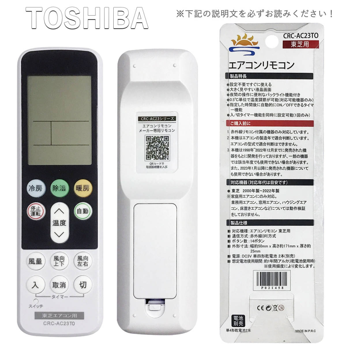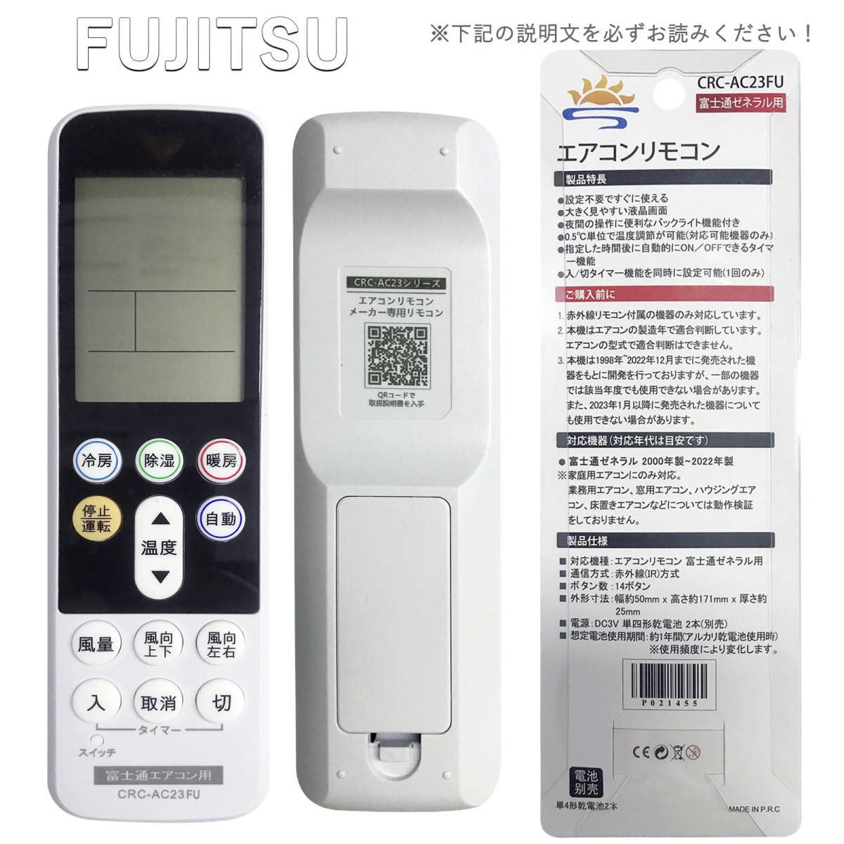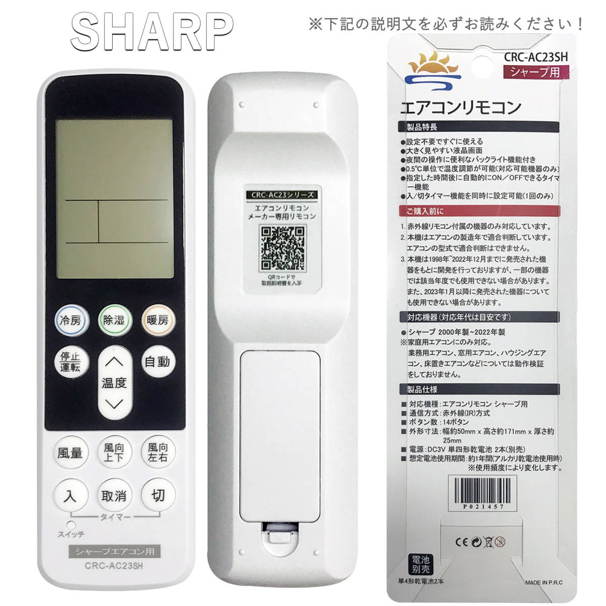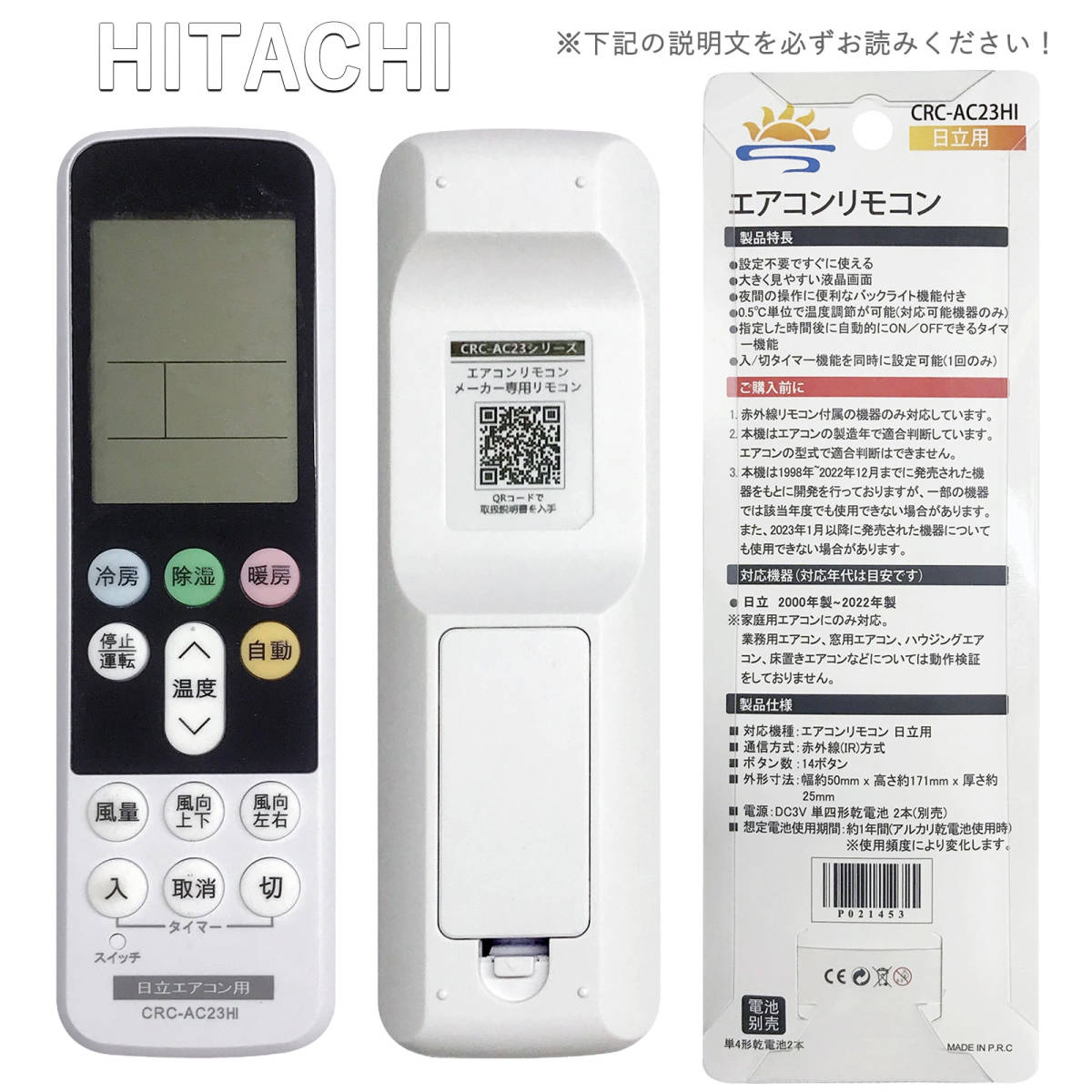 エアコン用赤外線汎用リモコンです。単4乾電池2本(市販の乾電池を別途ご購入下さい)で動作いたします