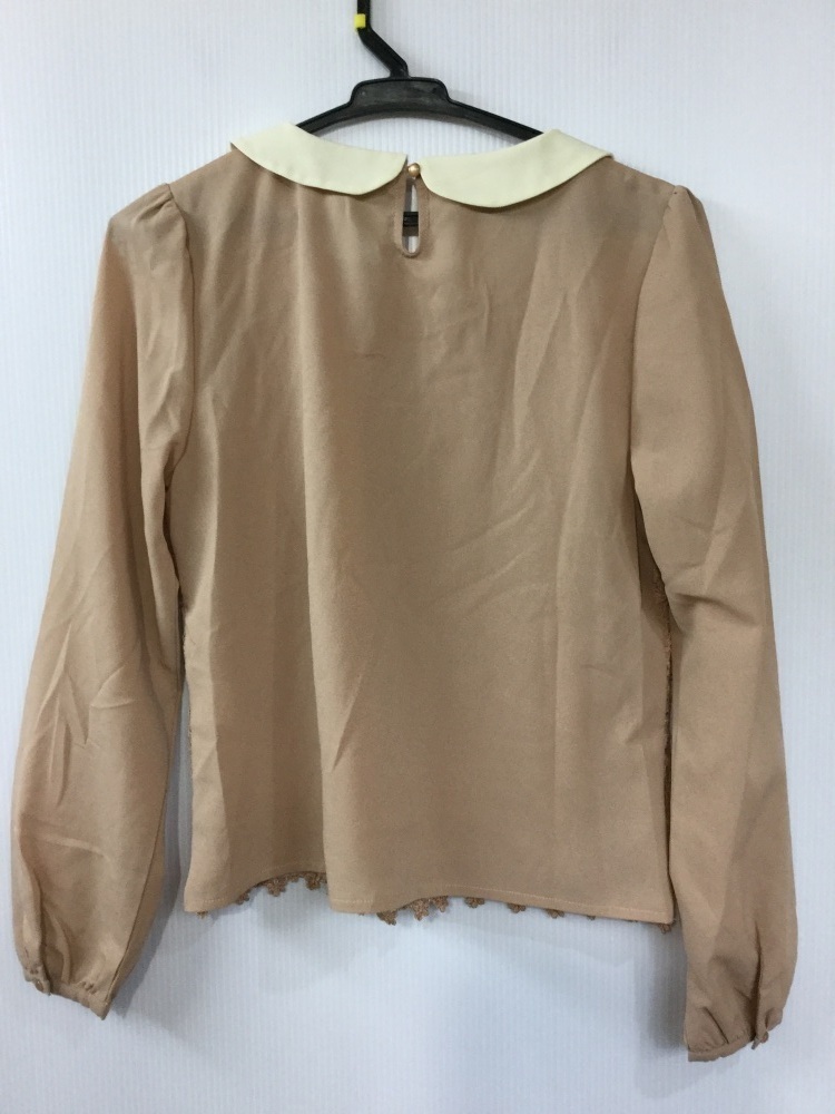 管理番号:124966 ミッシュマッシュ ピンクベージュ ブラウス 前身頃レース 襟薄いベージュ 表示サイズ:38 実寸(参考)