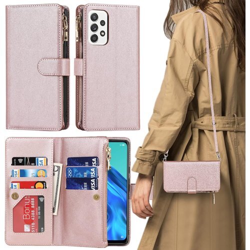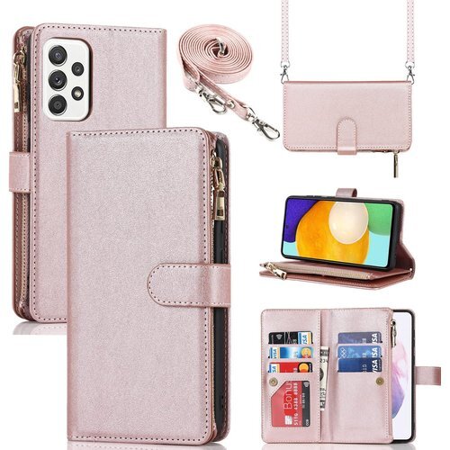 Galaxy A52 5G ケース 手帳型 ショルダー クロスボディ SC-53B ケース doo 対応 サムスン ギャラクシー A52 5G カバー A52 ケース galaxy SC53B ケース A525G スマホケース A52ケース 手帳型 適用 case iCoverCase ストラップホール付き カード収納 バッグ マグネット 留め具 肩がけ 首掛け 斜め掛け カードケース ファスナー型 ストラップ付き カバー ショルダーケース クロスボディケース カード入れ スマホケース 携帯カバー ピンク 322