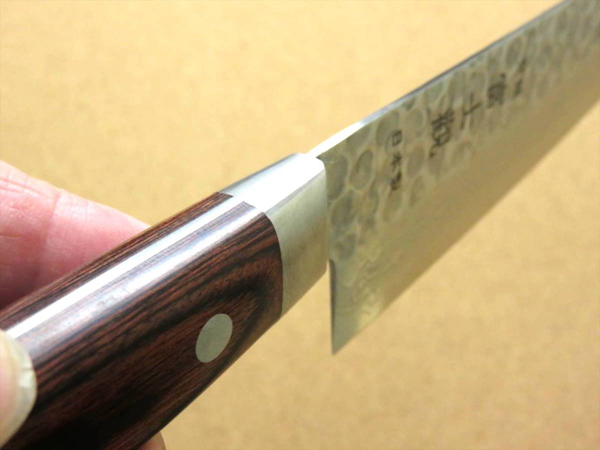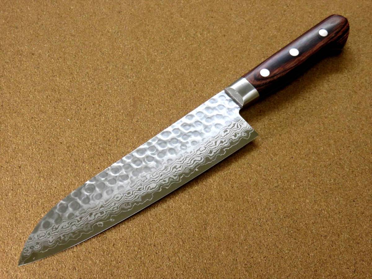 関の刃物 三徳包丁 18.5cm (185mm) 富士觀 ダマスカス 17層 鎚目鍛造 VG-10 口金付マホガニー 両刃 万能包丁 文化包丁 魚 肉切り 日本製