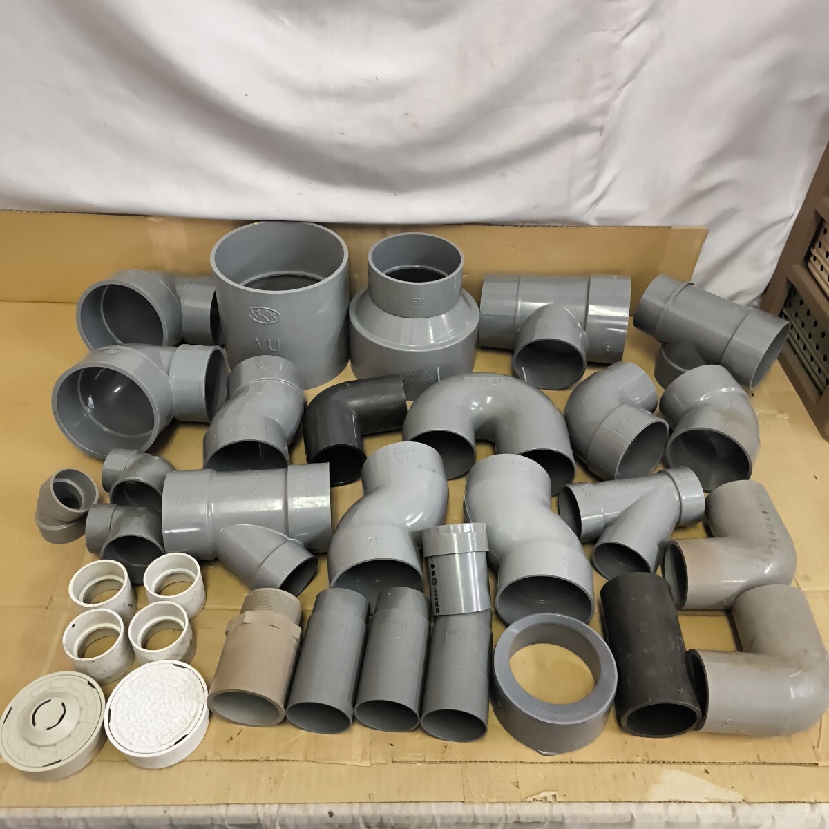 ◎【塩ビ管 まとめ売り】中古品 引き上げ品 キズ汚れあり 変色ある物込み 簡易洗浄済 配管 マエザワ 資材 パーツ 継手 264-75