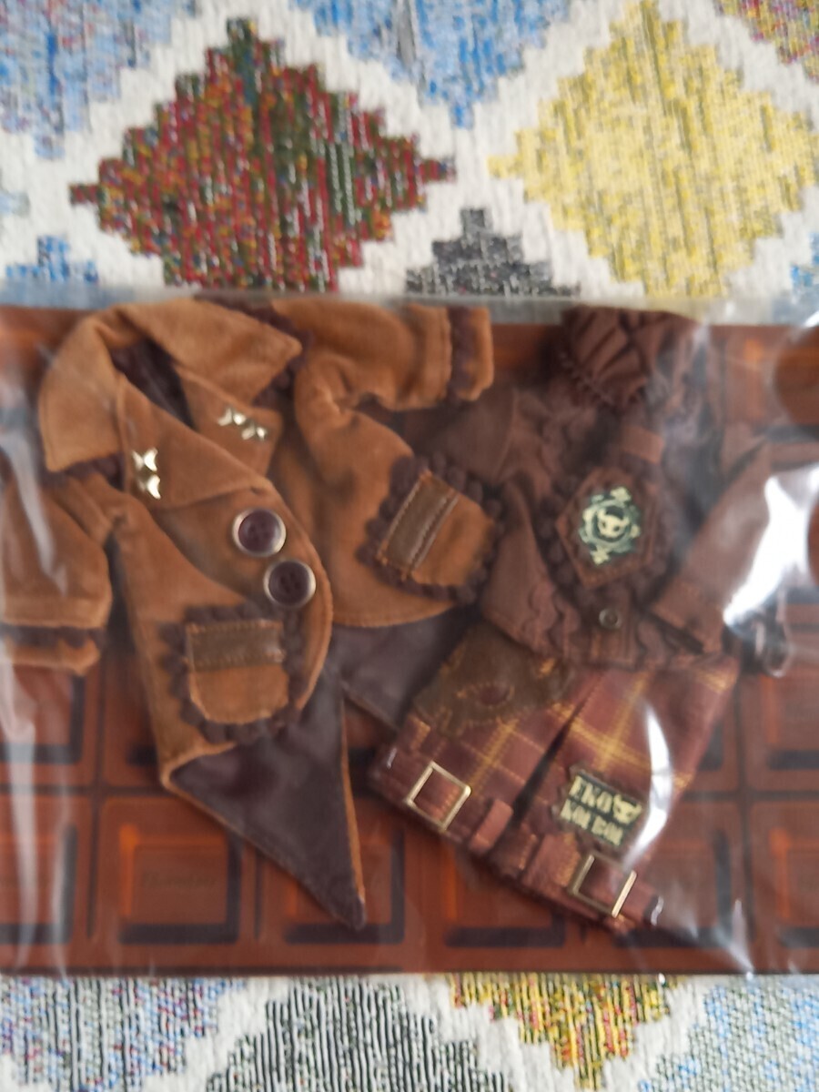 チョコレートをモチーフにしたようなブラウンカラーが可愛い、ドール服セットです。