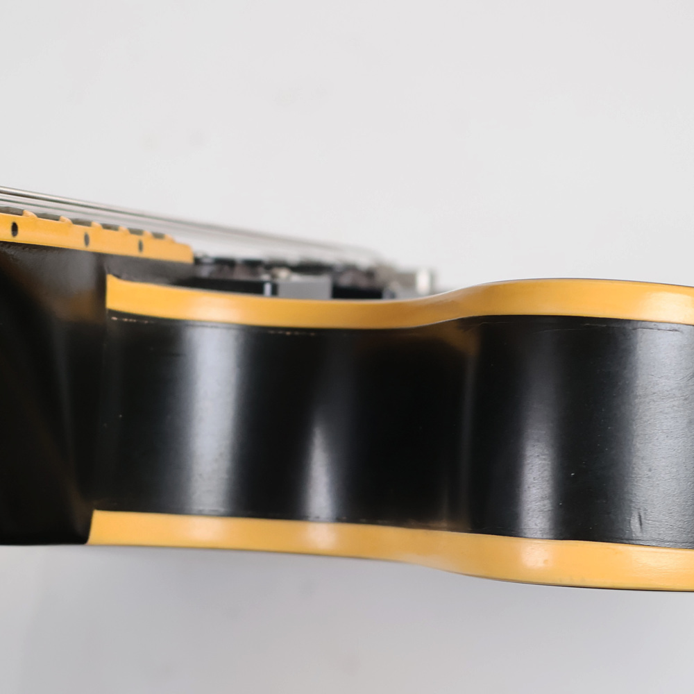 メイプル/ポプラ/メイプルのラミネイト構造のボディーにメイプル材のセンターブロックを配したセミアコースティックギターです。