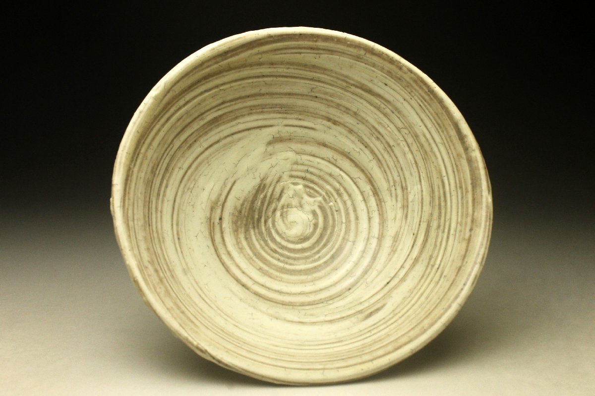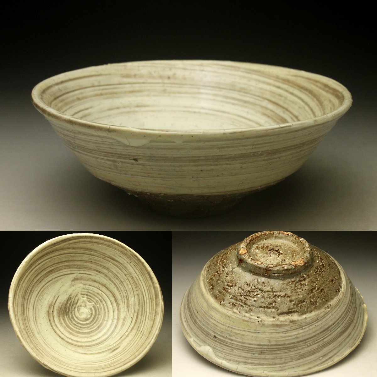 【余韻】 京焼 作家物 刷毛目 平茶碗★茶道具 抹茶碗 無傷美品<同梱可>