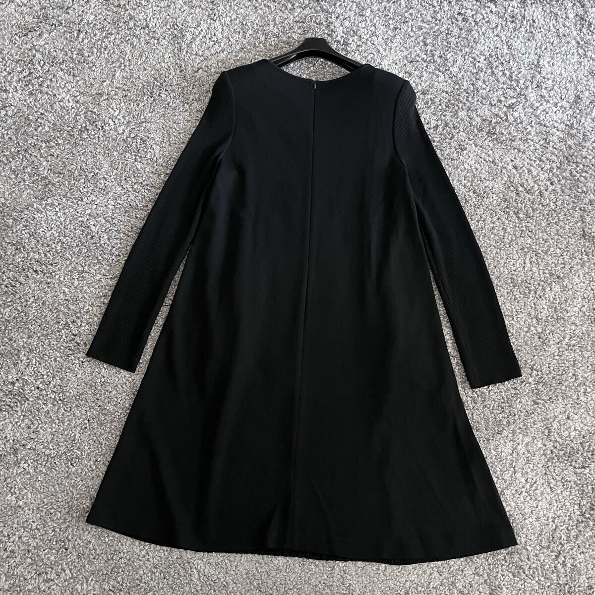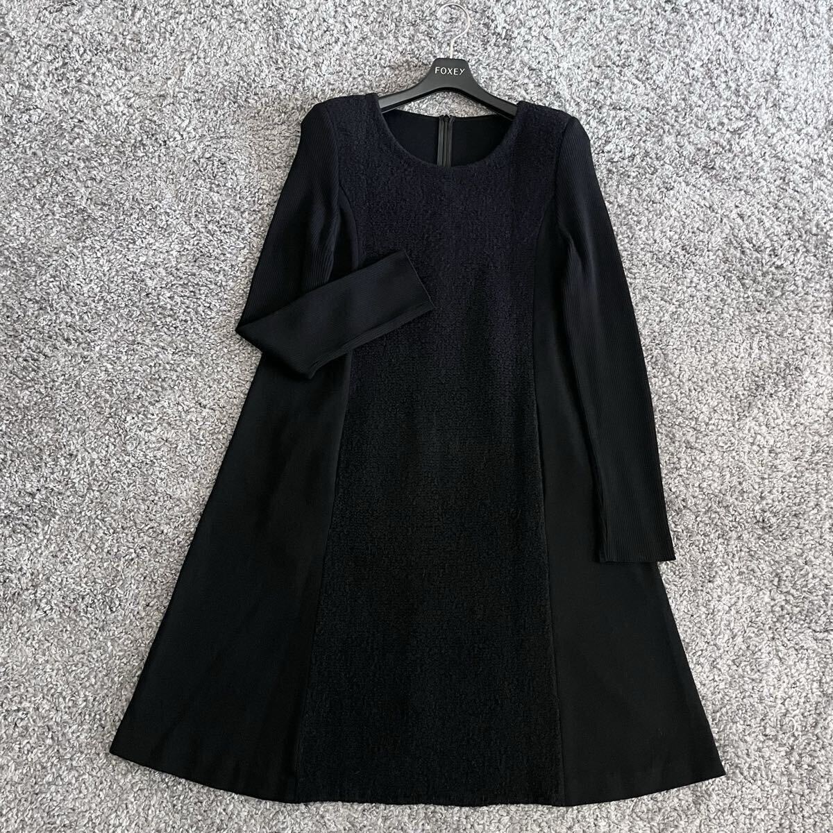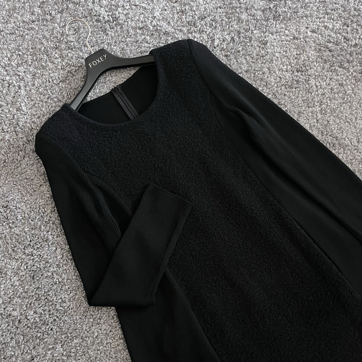 お色はブラック。フロントの中央はもこもことしたあたたかみのあるデザイン。袖はリブニット。バックファスナー。