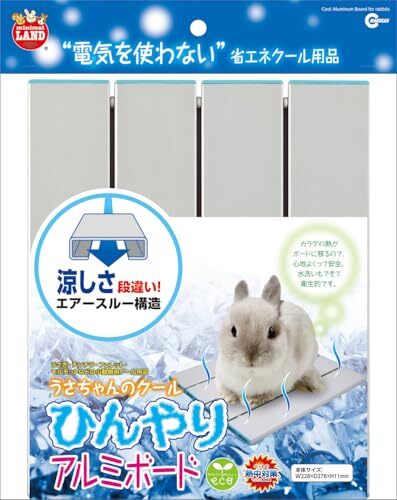 「ミニマルランド うさちゃんのクールひんやり アルミボード」▼4906456550181▼(商品説明)-/-/4906456550181・パッケージ個数:1・電気を使わない省エネクール用品です。商品紹介 表面はアルマイト加工で傷や汚れがつきにくくお手入れ簡単で清潔です。滑り止めシールがフローリングでの転倒を防止します。 使用上の注意 本品は小動物用クール用品です。それ以外の用途には使用しないでください。アルミは熱伝導率が高いため、熱を非常によく伝える性質があります。直射日光が当たる場所や風通しの悪い暑い場所、ペットの体温より温度が高くなる場所(38℃以上)では使用しないでください。戸外で使用する場合は、特に注意し、風通しの良い日陰でご使用ください。お子様のいたずらにはご注意ください。また、オモチャとして遊ばせないでください。持ち運びや取り扱いには十分注意してください。足の上などに落としますとケガの原因となる場合があります。壁や家具などに立てかけないでください。キズなどの原因となる場合があります。アルミは柔らかく、衝撃に弱い性質があります。アルミボードの上に物を落としたり、人が乗ったりすると変形する原因となります。アルミボードの上を歩いたり、走ったりしないでください。アルミボードがすべり、ケガの原因となる場合があります。火気や暖房器具のそばに置かないでください。火災やペットの火傷、製品の変形の原因になります。ペットや飼育用品をさわった後は、手をよく洗ってください。ペットの種類・大きさ・性質により、本品を噛み壊しケガの原因となる場合があります。噛み癖のあるペットには十分注意してください。 原材料・成分 アルミニウム(アルマイト加工)、PP、ゴム、すべり止めパッド:EPTゴムスポンジ