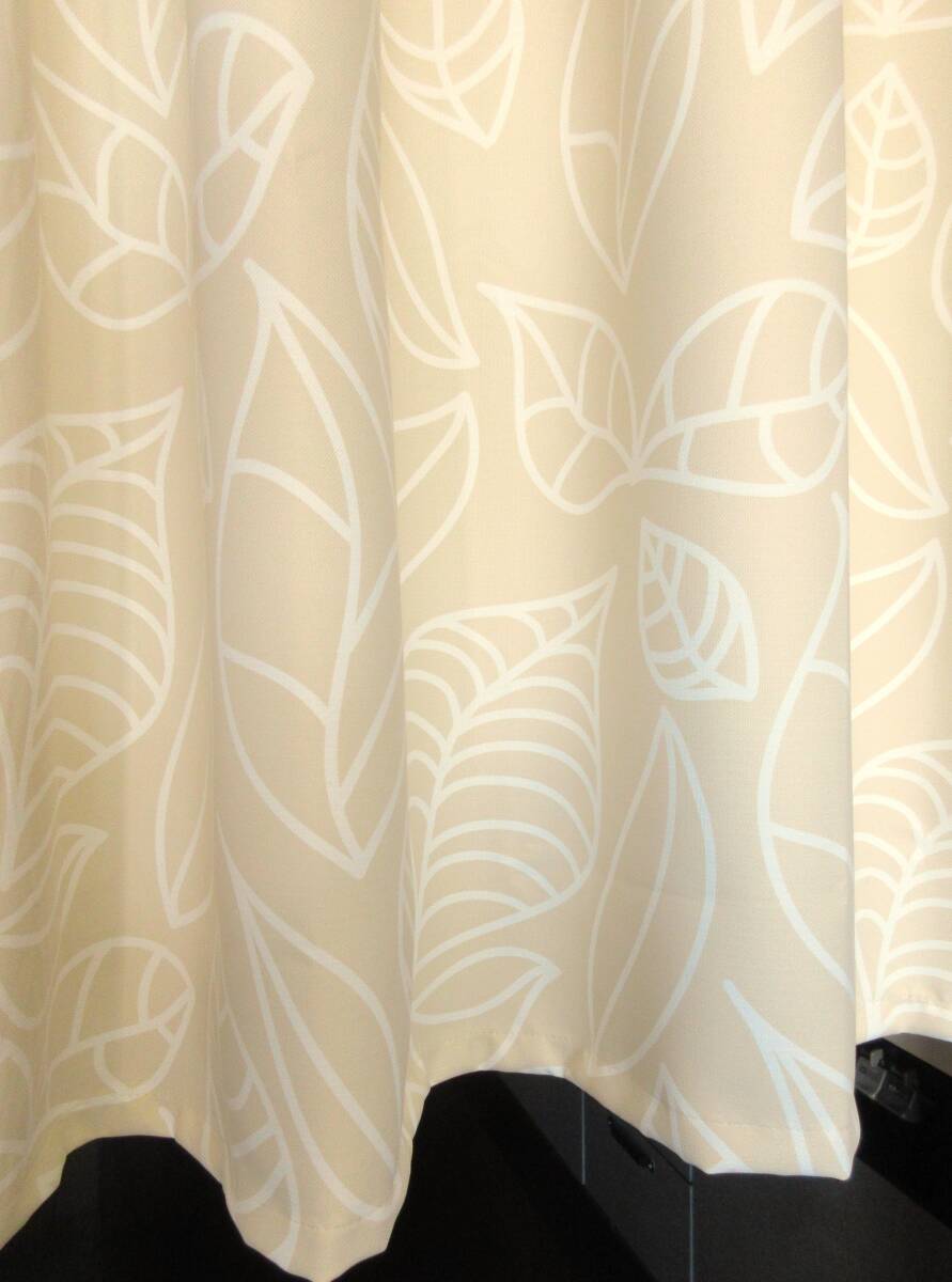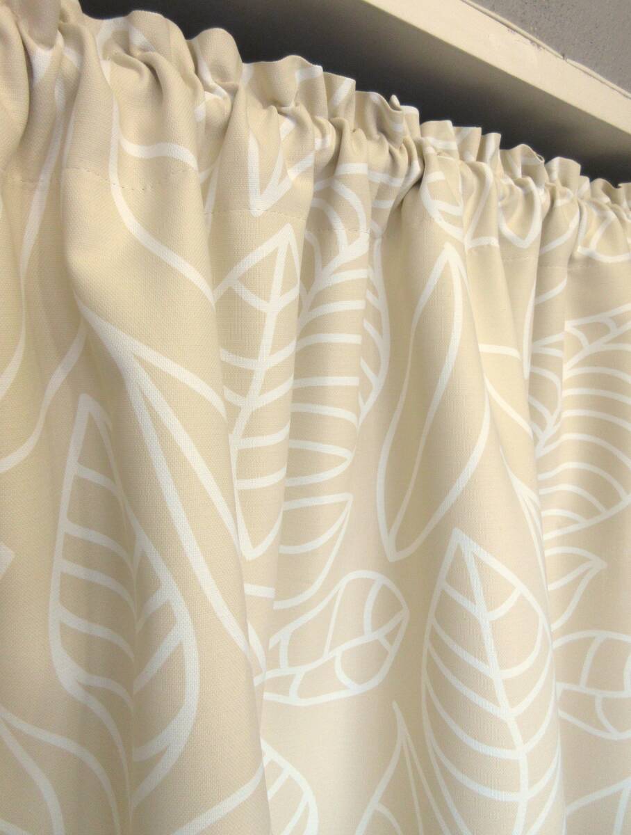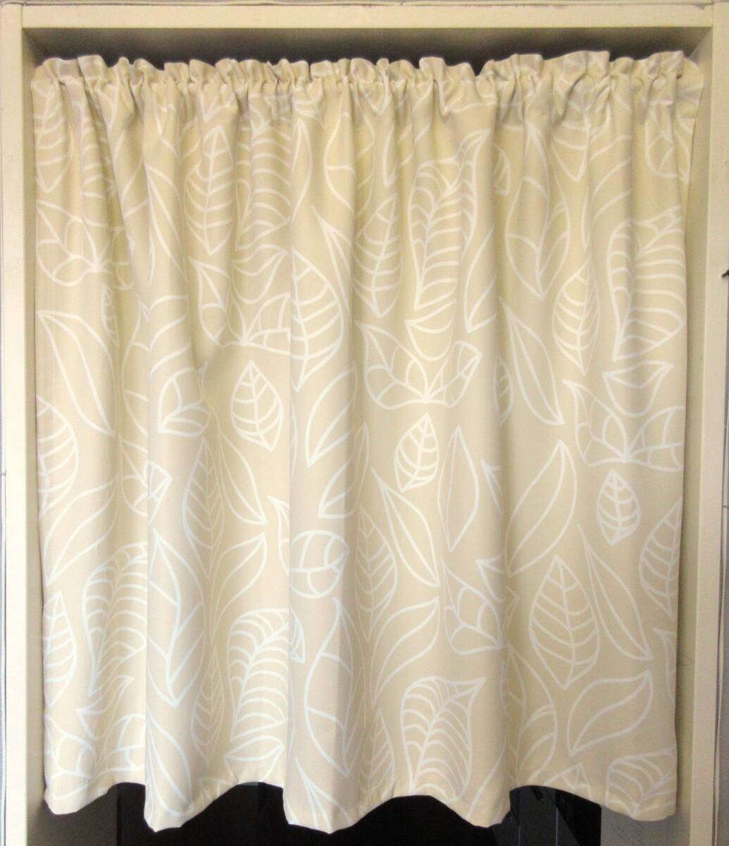 ★残1★【3級遮光 カフェカーテン (CM1011 IV)・日本製】断熱 植物柄 幅140cmX丈90cm