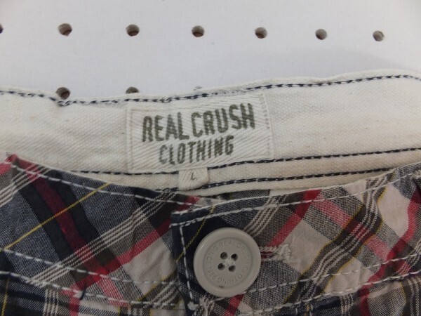 REAL CRUSH リアルクラッシュ メンズ チェック柄 ハーフカーゴパンツ L 紺赤ベージュ他 です。