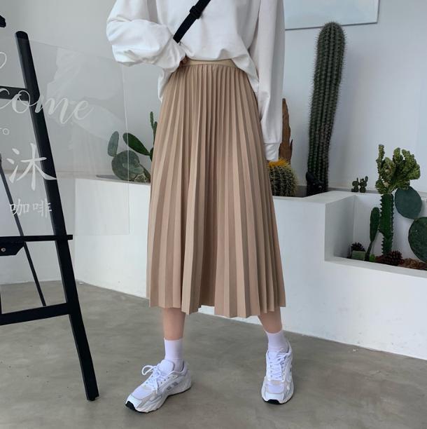 動くたびにふわっと揺れる細かいプリーツが魅力のレディースミモレ丈スカート(^^)/