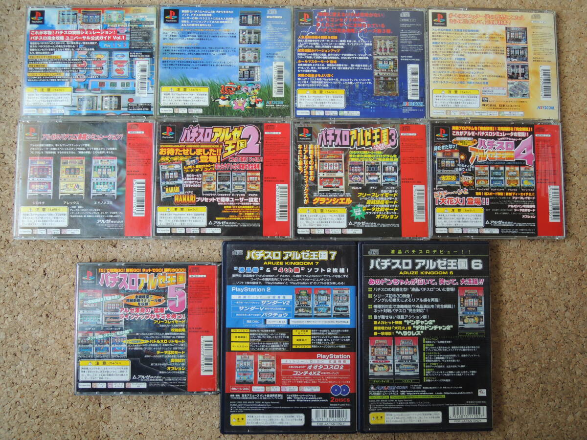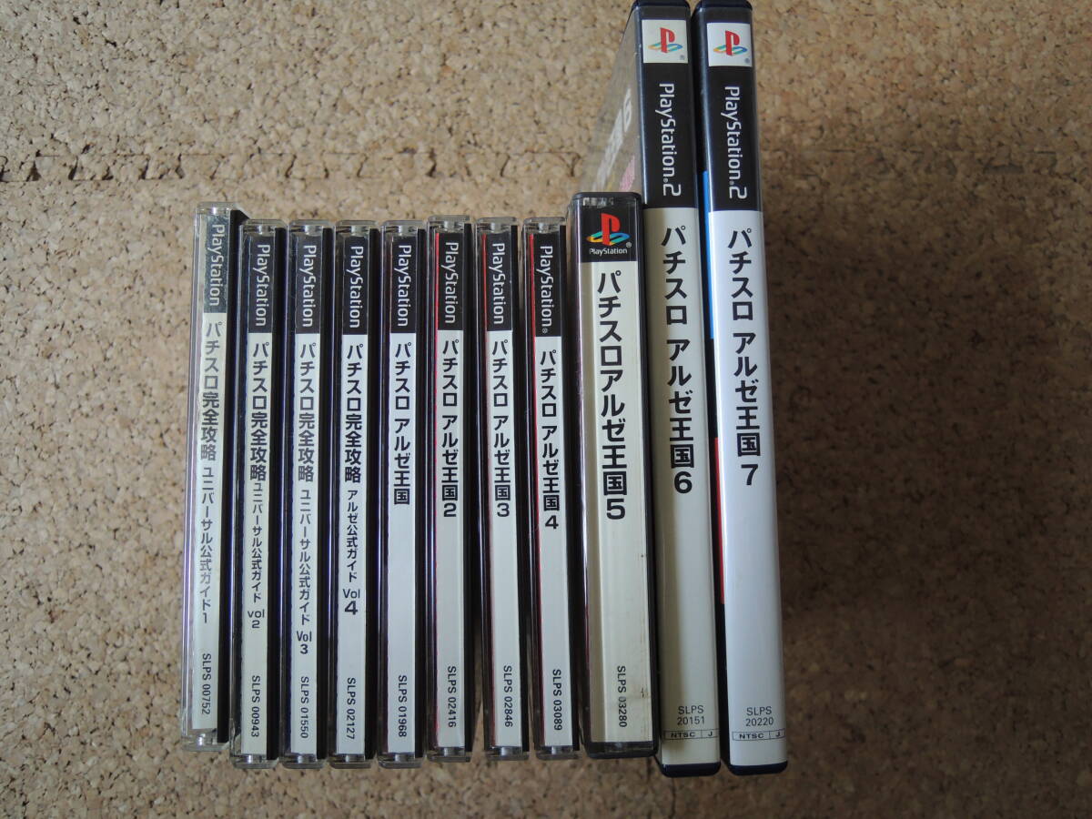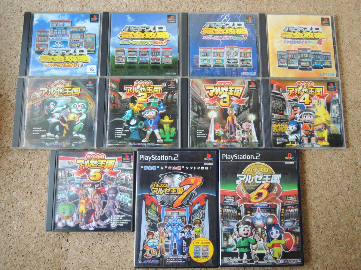 こちらは PS1/PS2 パチスロ アルゼ王国1~7 & ユニバーサル公式ガイド1~4 11本セットです。