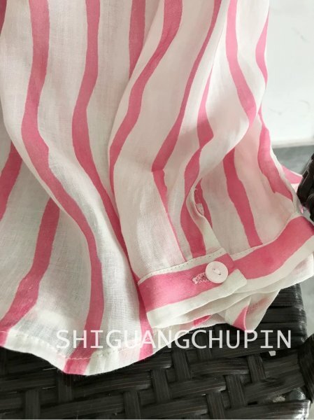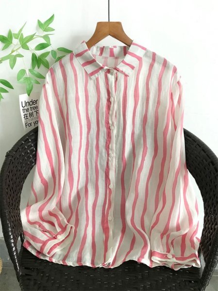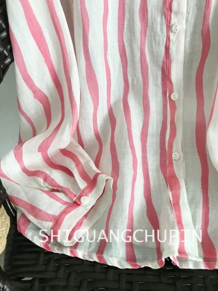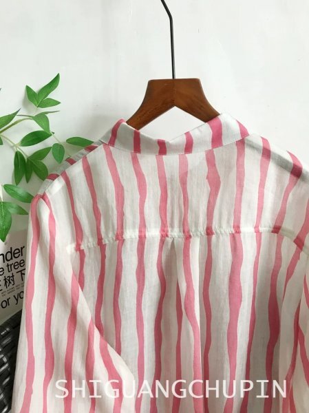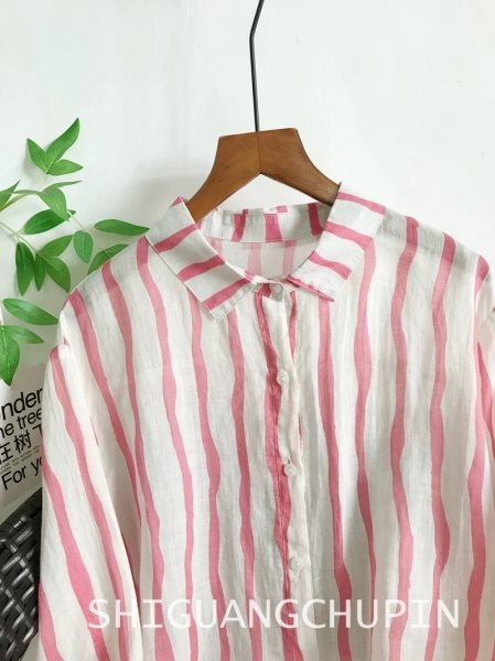 sg 2508 フリーサイズ ワイシャツ チュニック トップス 麻100% 大人可愛 ナチュラル サラサラ 通気性肌触り抜群 オシャレ ストライプ柄