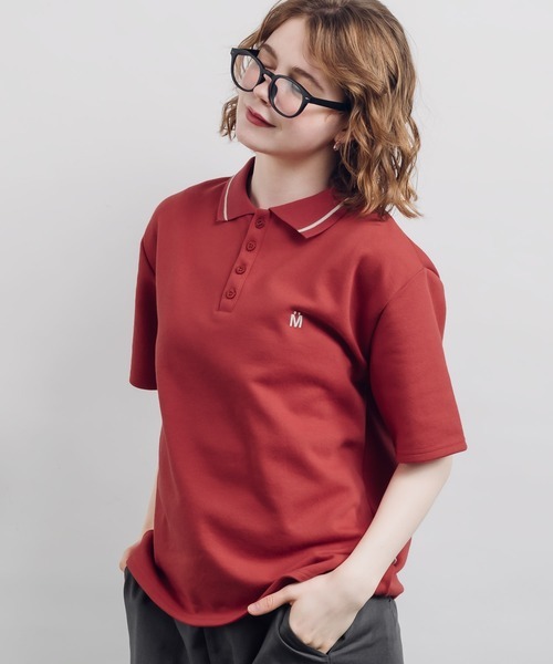 「MUHET」 半袖ポロシャツ MEDIUM ボルドー レディース