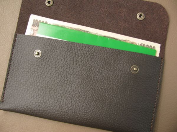 (sh3)本革 お札入れ 通帳ケース 牛シュリンク革 ダークブラウン(濃茶)