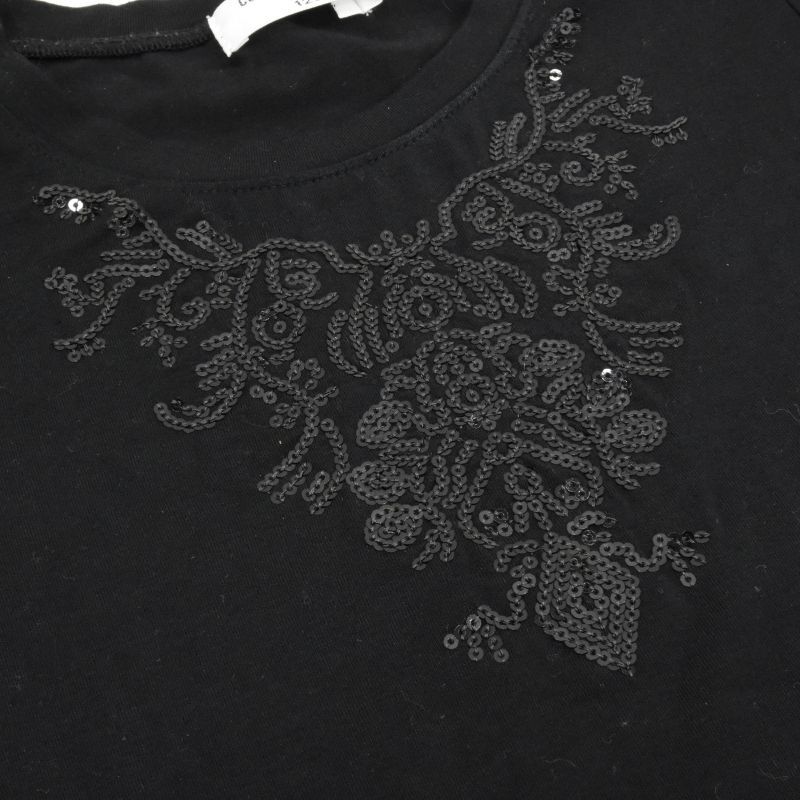 スパンコールでデザインされた柔らかくドレープ感ある素材のクルーネックカットソーです。