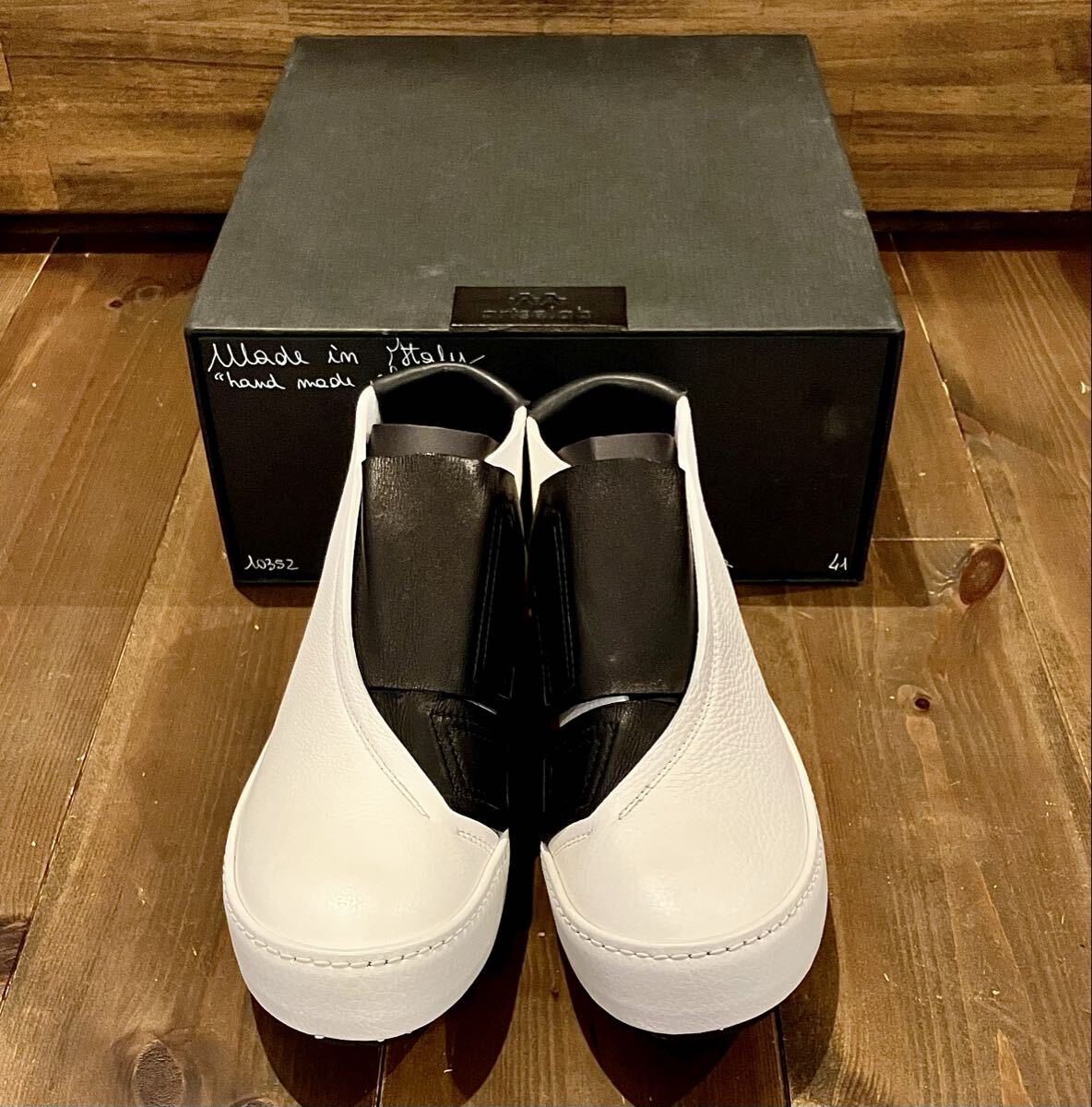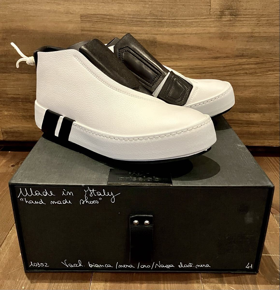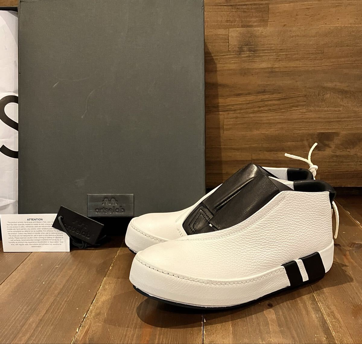 イタリア発のアルチザンブランド「ARTSELAB」による、定価約10万円のハイエンド・ハンドメイドスニーカーブーツ。国内では展開の殆どない希少モデルで、イタリアの高感度セレクトショップにて取り扱われていた逸品です。