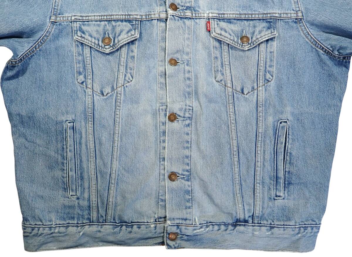 備考 Levi'sの70503-04、デニムトラッカージャケットです。色落ち具合い、ダメージ、補修跡も着古した感が非常に雰囲気のある1枚かと思います!クリーニング、プレス済。