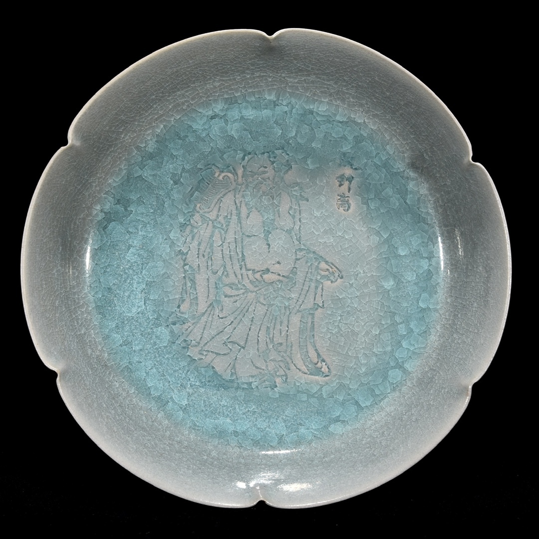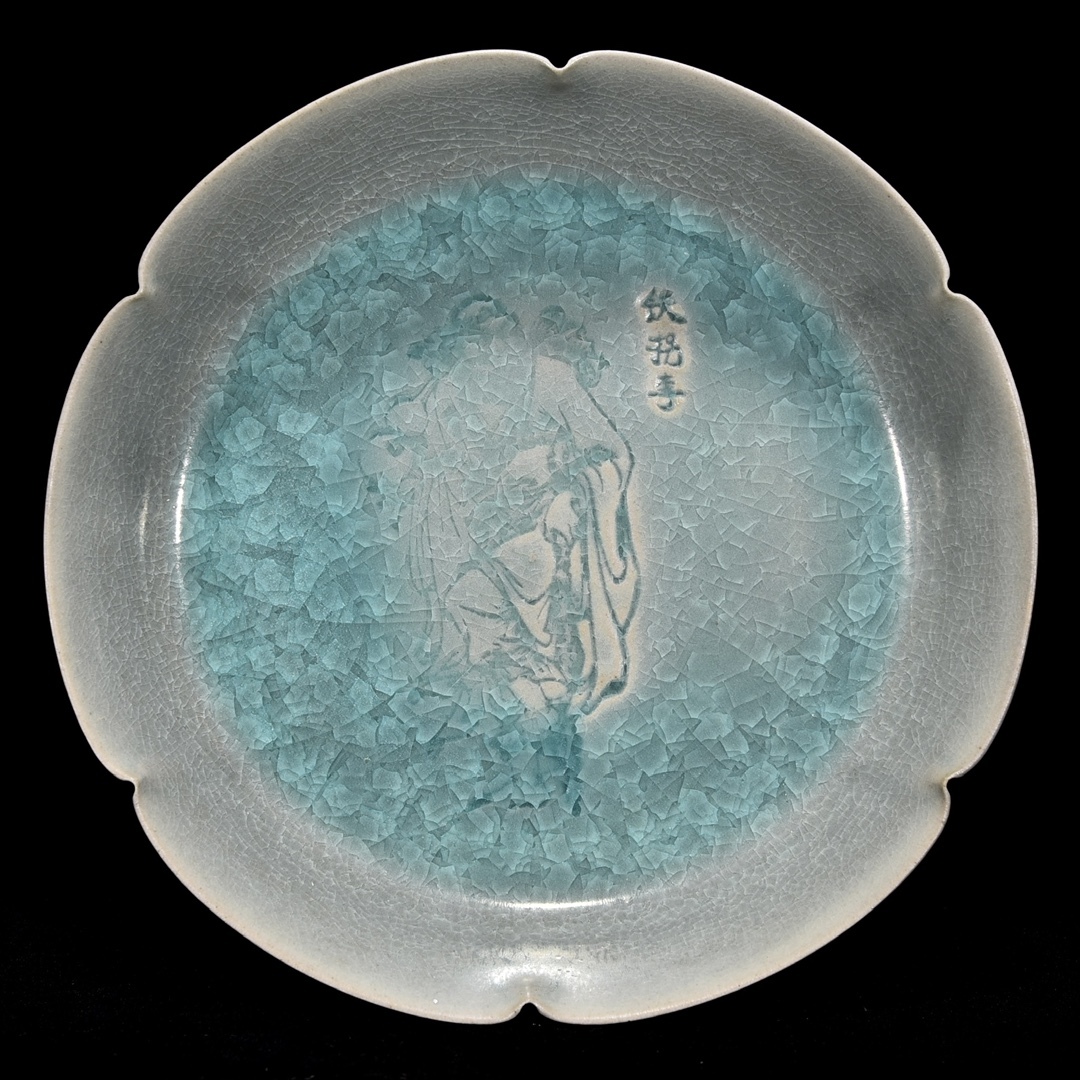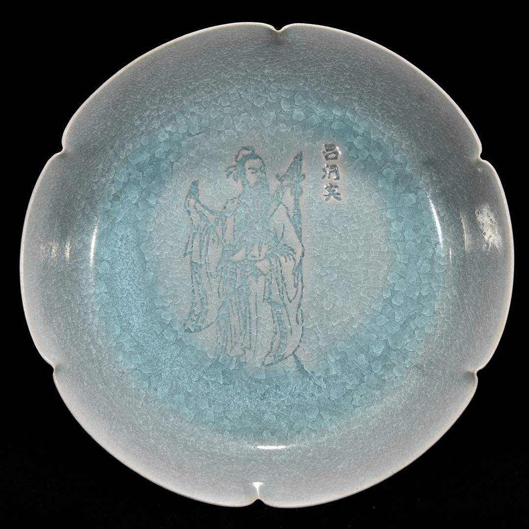唐物 宋 汝窯 冰裂紋 八仙紋 葵口洗 陶芸 古陶磁器 中国磁器 極細工 中国古玩 骨董品 古美味 D68