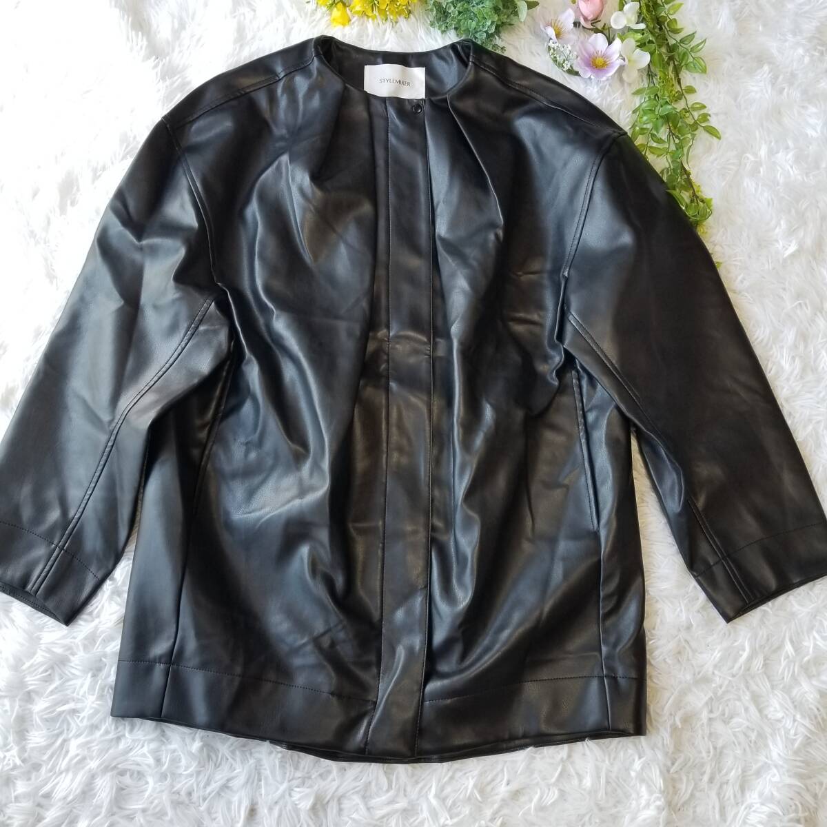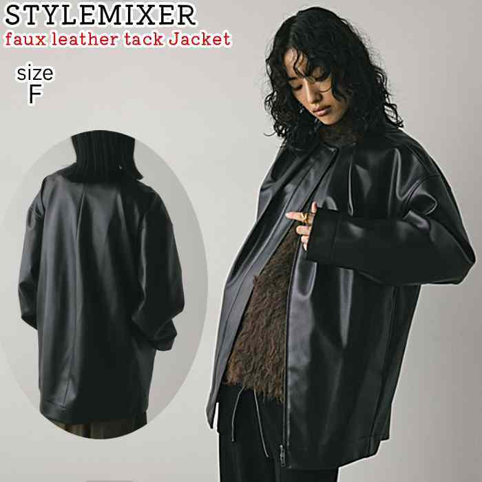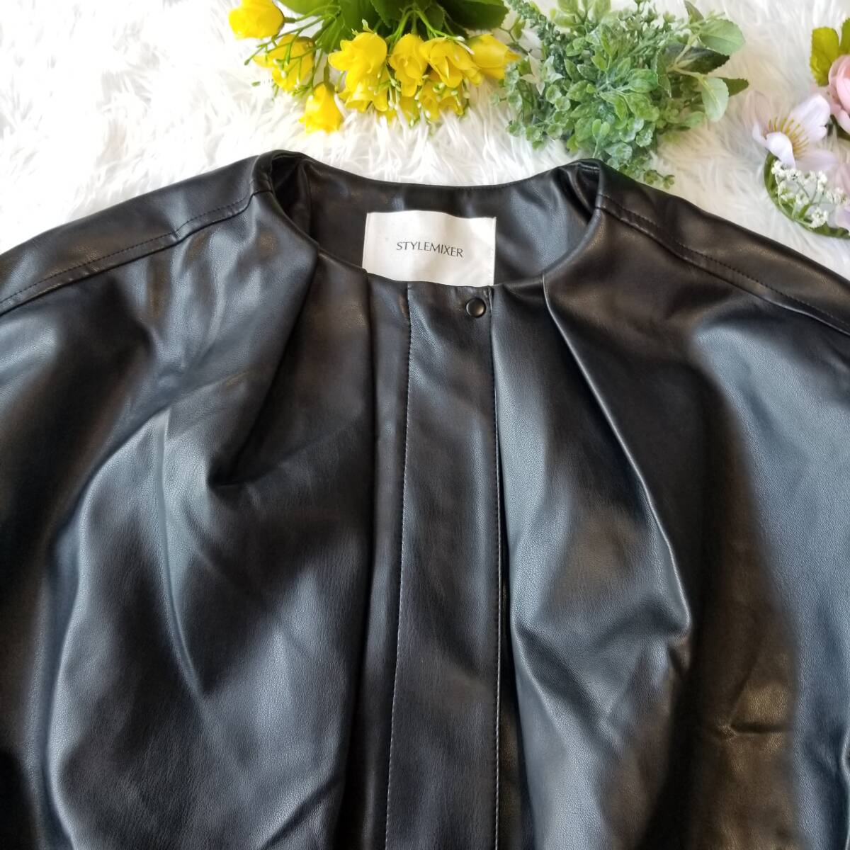 【未使用級】スタイルミキサー フェイクレザータックジャケット STYLEMIXER レディース 合成皮革 ブラック Free【706】
