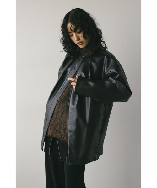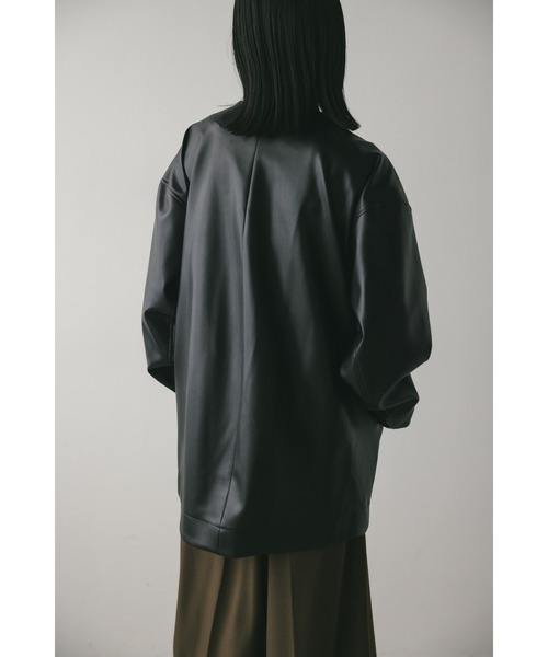 オーバーサイズのフォルムがポイントのフェイクレザージャケット。