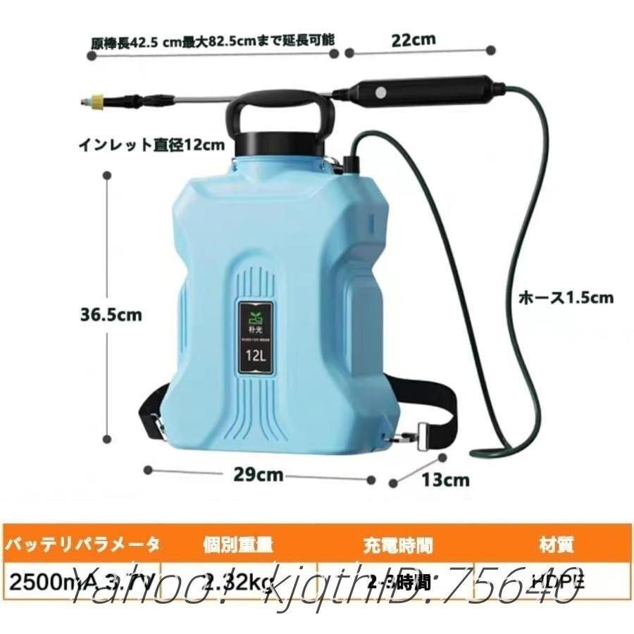 電動噴霧器 充電式 自動噴霧器 12L バッテリー式 除草剤 害虫駆除 農薬 消毒 肥料 圧力調整可 急速充電 家庭用 zhw0103.2