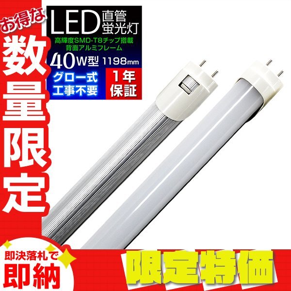 | 安心の1年保証 取り付け簡単5秒☆工事不要 高品質LED(SMD)蛍光灯省電力40W形1200mm |