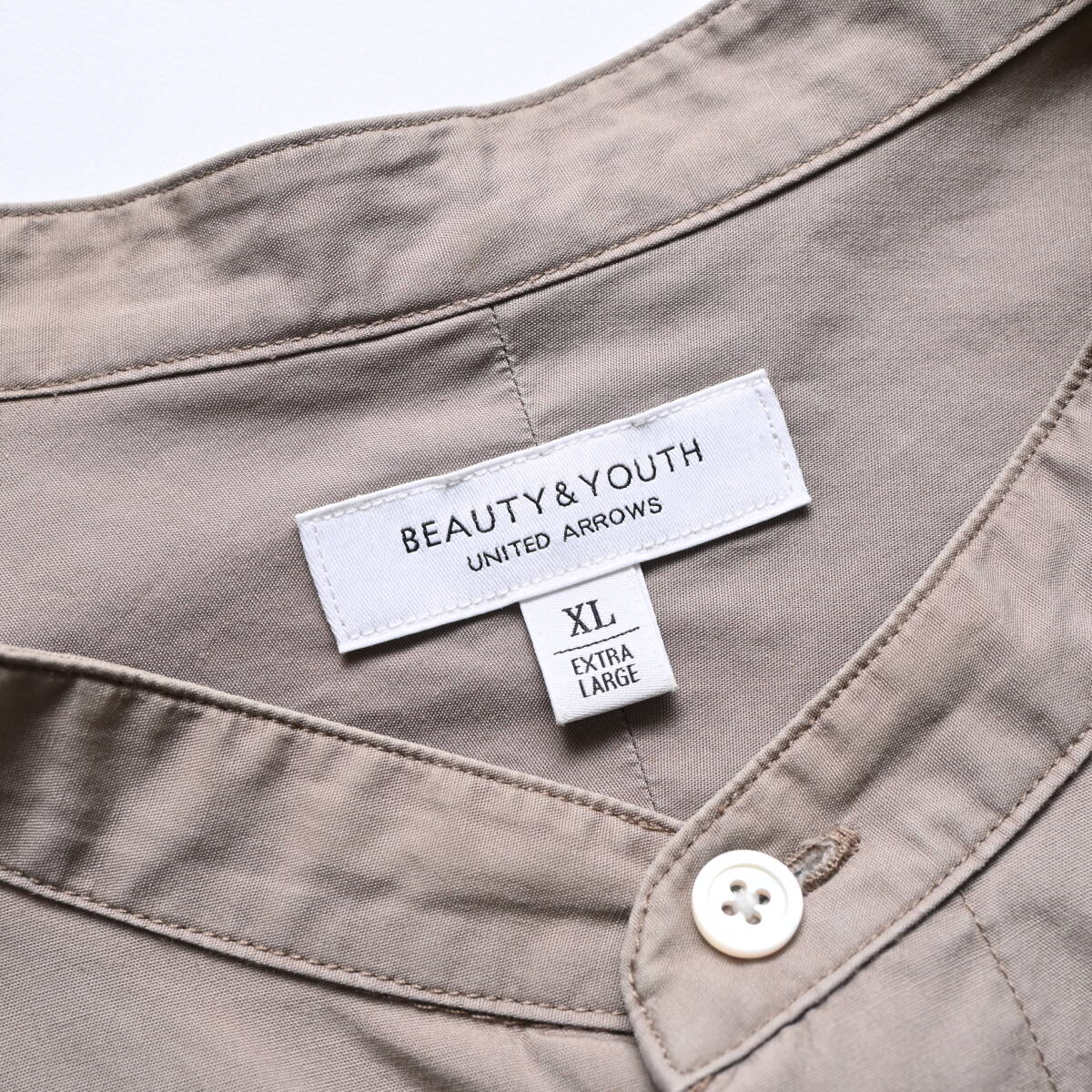 【メンズ XL 定価1.1万円】BEAUTY&YOUTH UNITED ARROWS アローズ ブロード バンドカラー シャツ ベージュ 長袖 DA5311