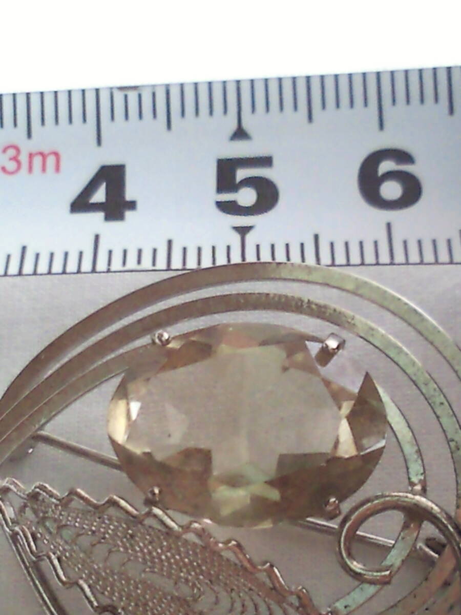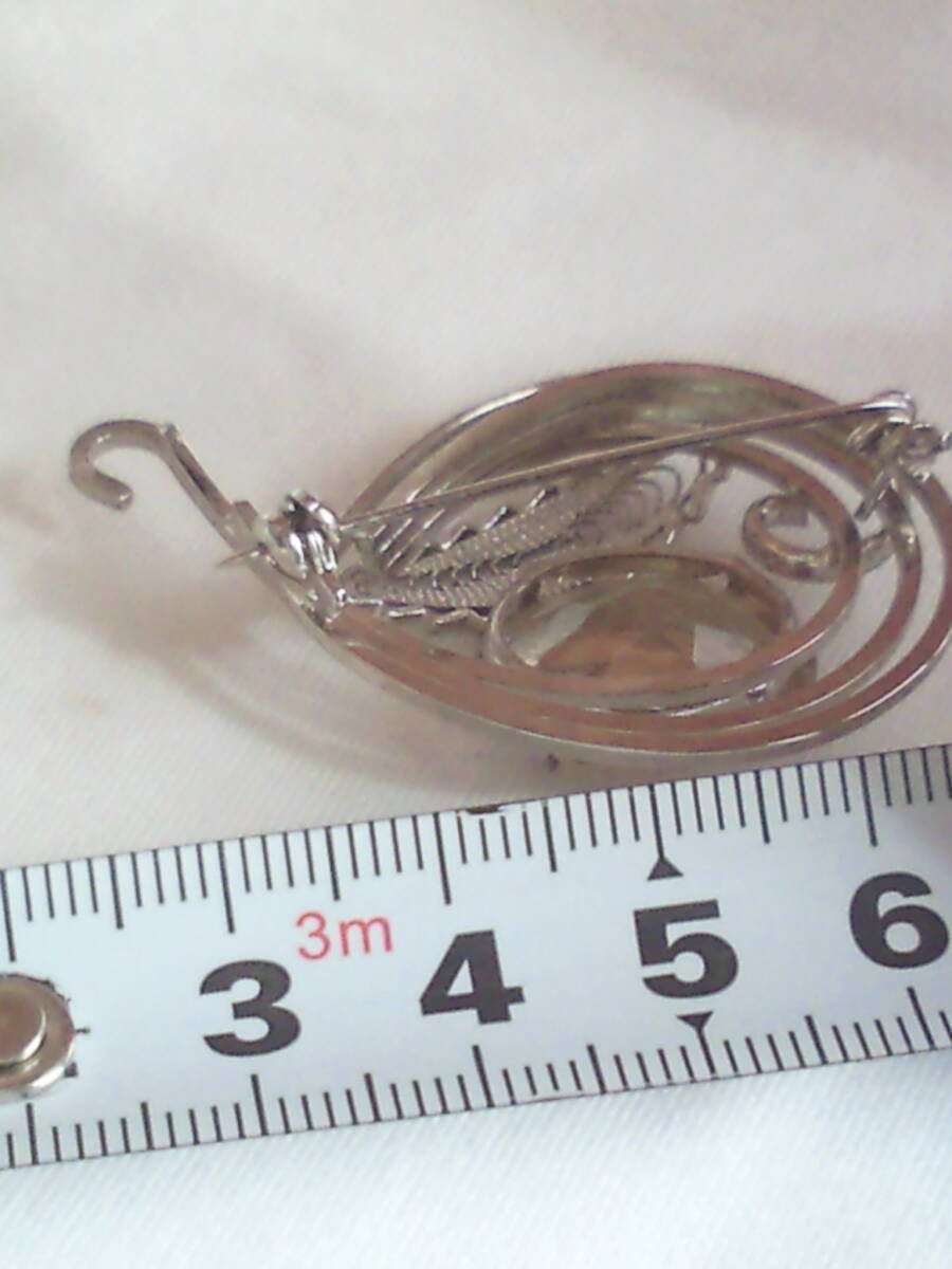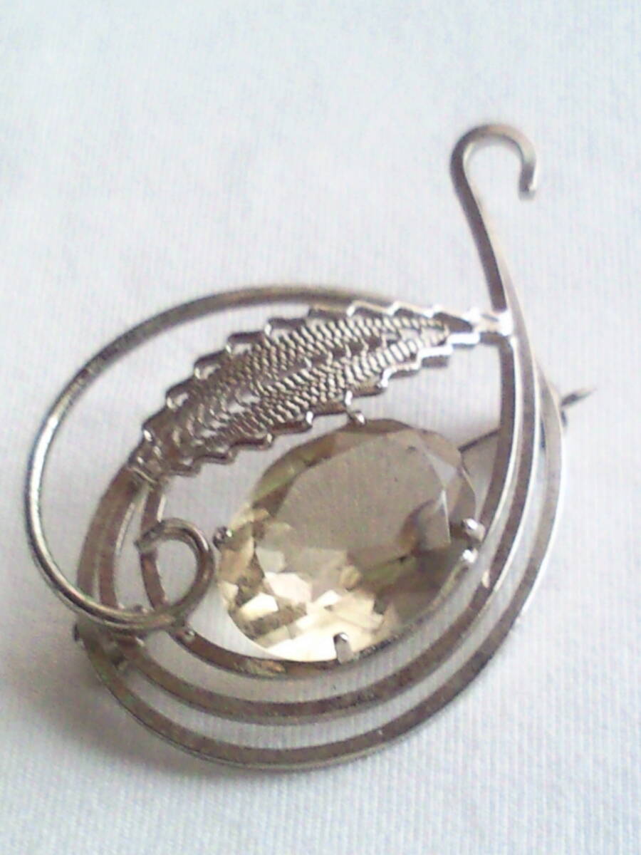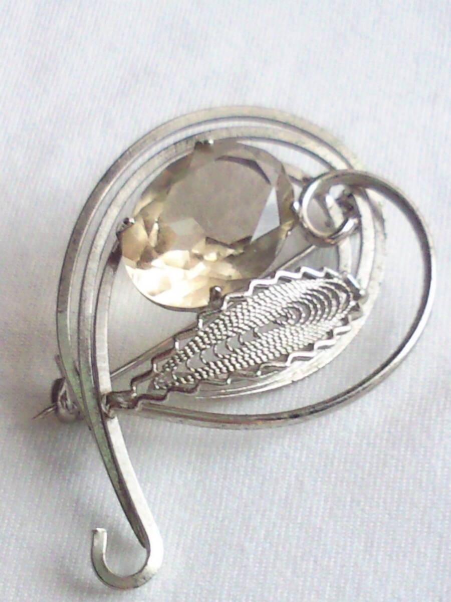スモーキークォーツ細密銀細工品ブローチ●美しいフォルム♪煙水晶パワーストーン●国産天然石ヴィンテージ骨董アンティークジュエリー送無