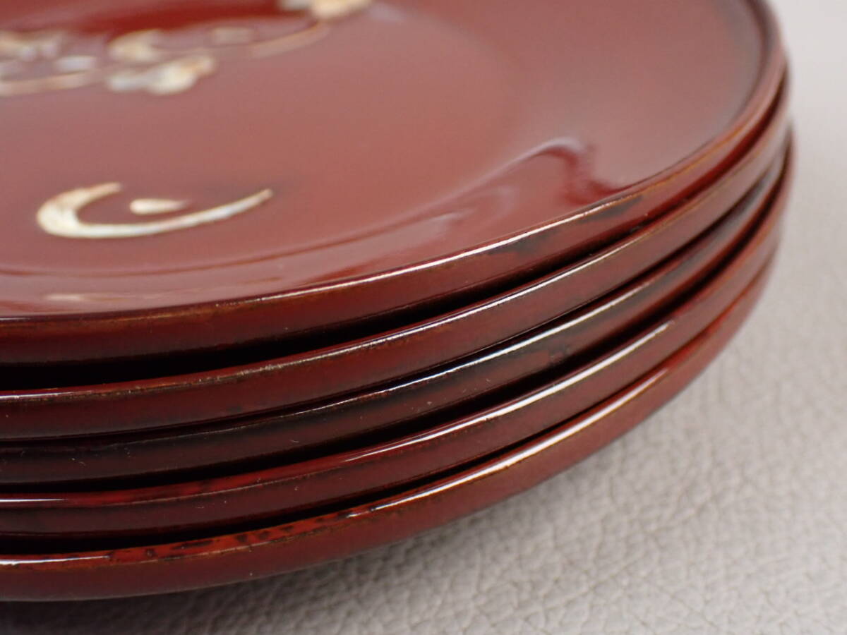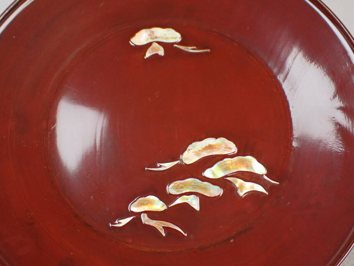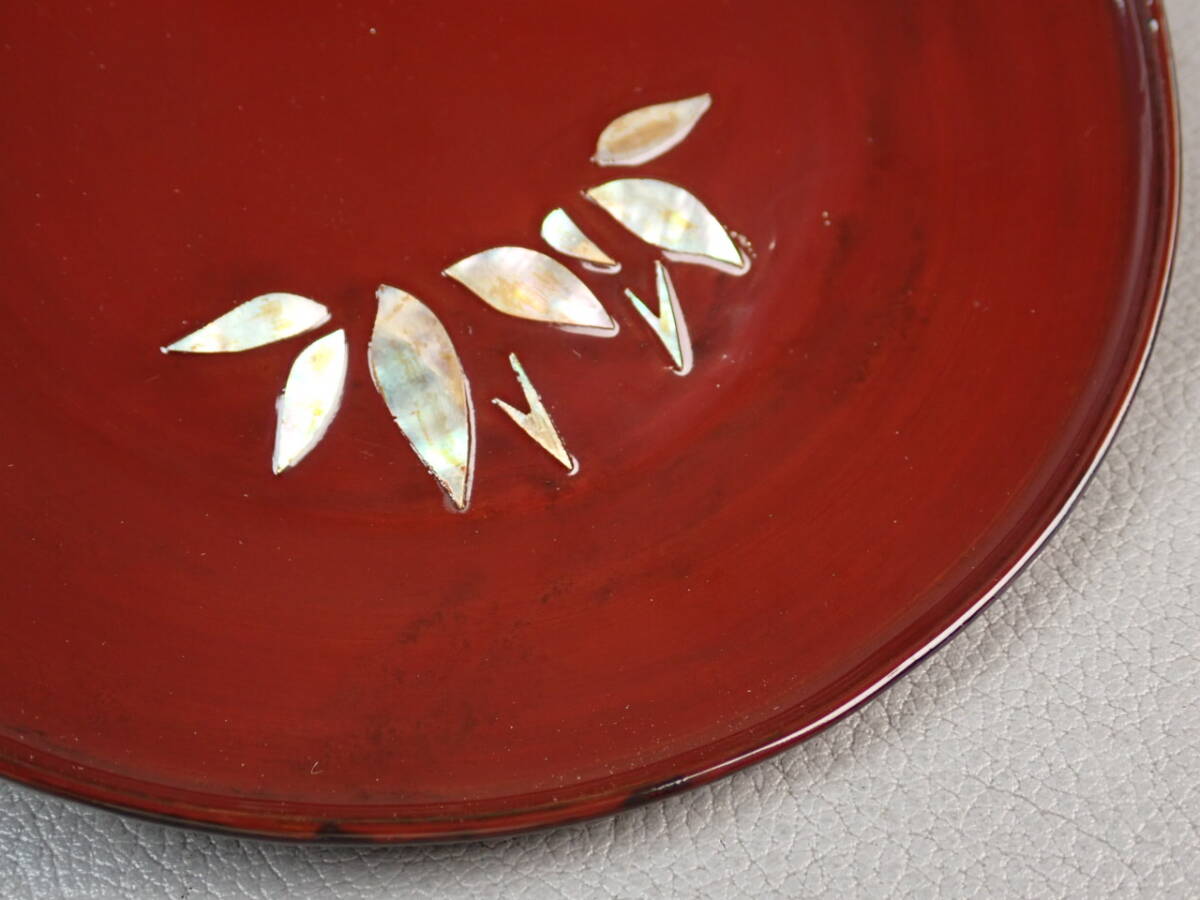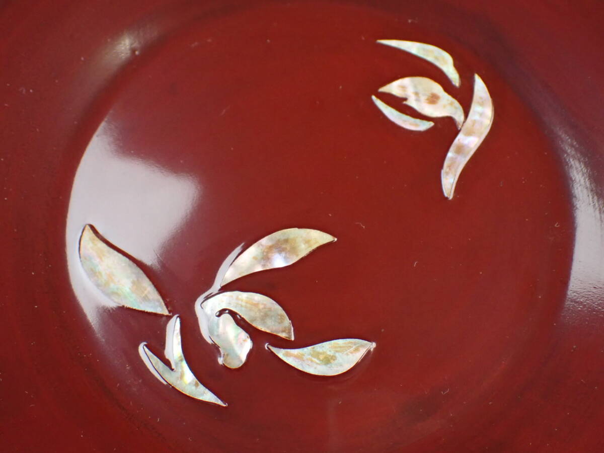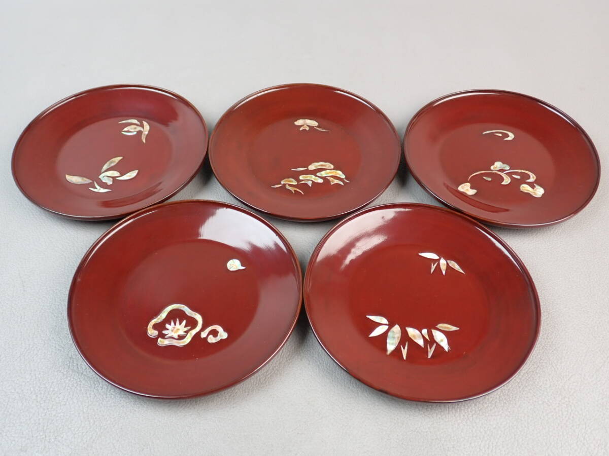 螺鈿、朱塗、図変銘々皿、5客です。
