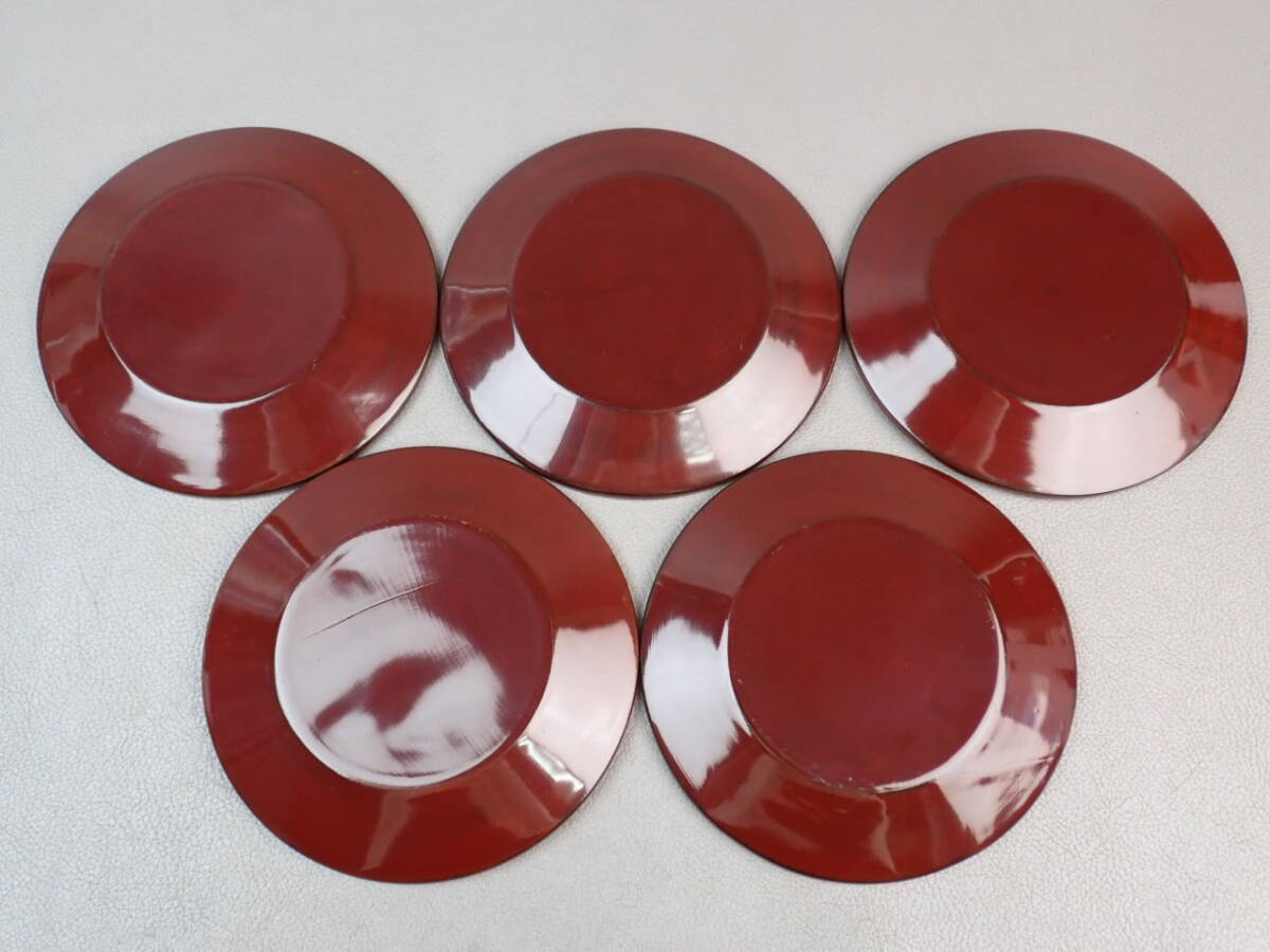 【骨董・茶道具】★螺鈿 朱塗★★図変銘々皿 5客 gn091tb22 菓子器 和食器