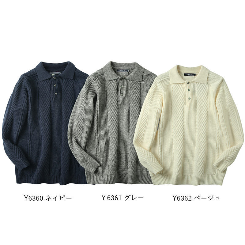 Y6360-L ネイビー 新品 ウール混 ジャガード 肌触りが良い ニット セーター 折り襟 柔らか 暖かさ 秋冬 厚手 メンズ カジュアル トップス