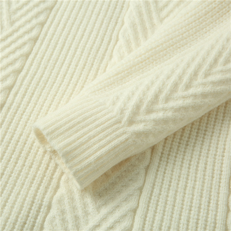 Y6360-L ネイビー 新品 ウール混 ジャガード 肌触りが良い ニット セーター 折り襟 柔らか 暖かさ 秋冬 厚手 メンズ カジュアル トップス