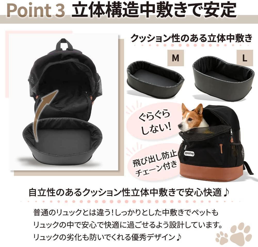 前面は2重フタになっており、全て閉めれば普通のリュックに、外フタのみを開けメッシュフタにすればペットの様子を外から見ることが出来ます。公共交通機関の利用時やペット可施設への入館、通院時などさまざまな場面で大活躍!
