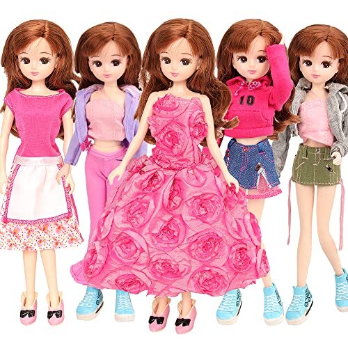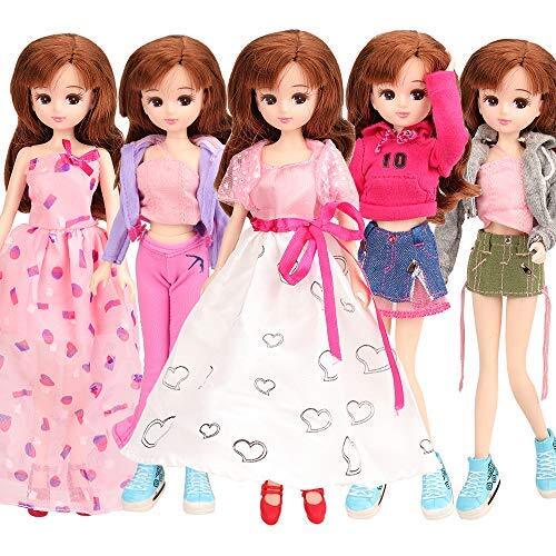 Barwa 22㎝人形用服 リカちゃん人形用ドレス ランダム5枚服セット 1/6人形用服 22cm人形用ドレス 手作り 可愛い
