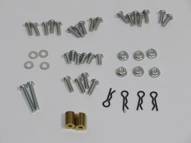 ボディパーツ、ステッカー、必要なネジ類、金具があります。