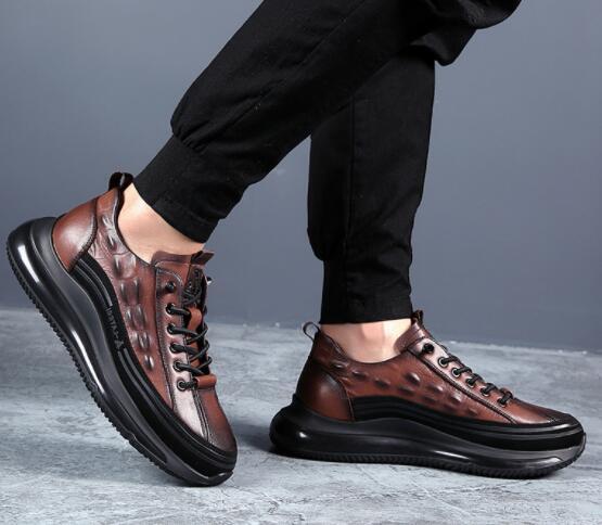 新品人気スニーカー メンズ レザーシューズ 高級牛革 ホワイトシューズ 男女兼用 カッコイイ 鰐柄 通気性 厚底靴 24~27cm