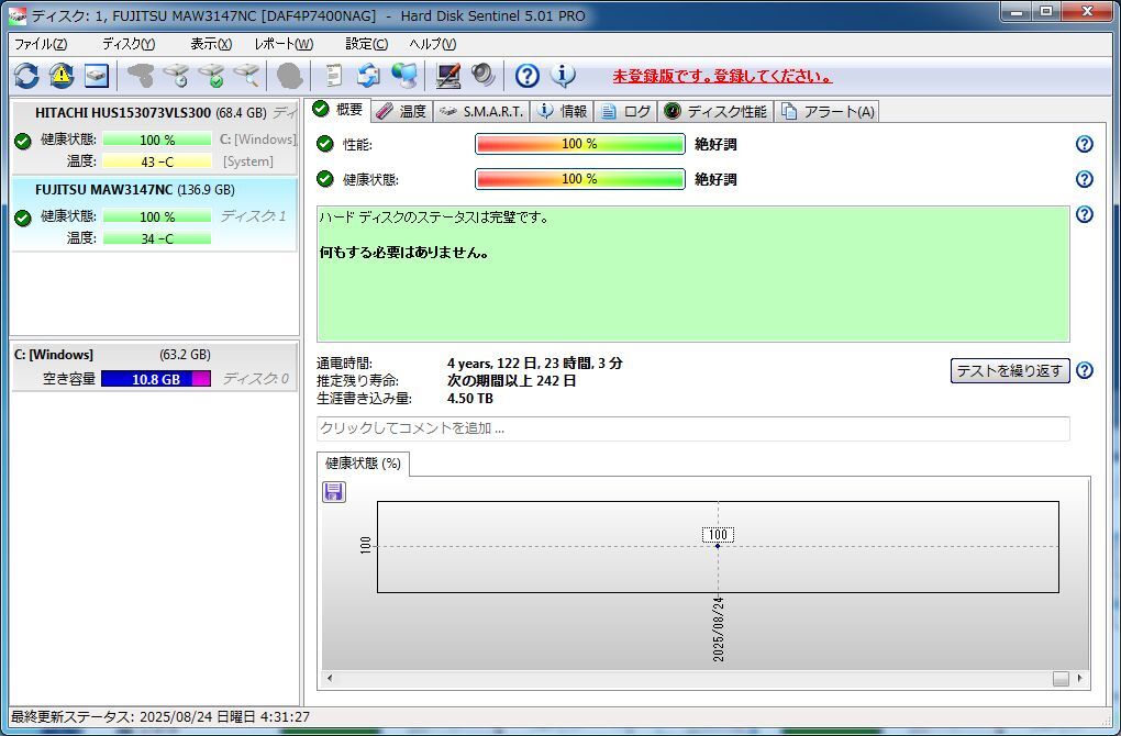 HDDsentinel, DLG, HDD-SCANで初期化・全セクタ検査済み・不良セクタはありません。