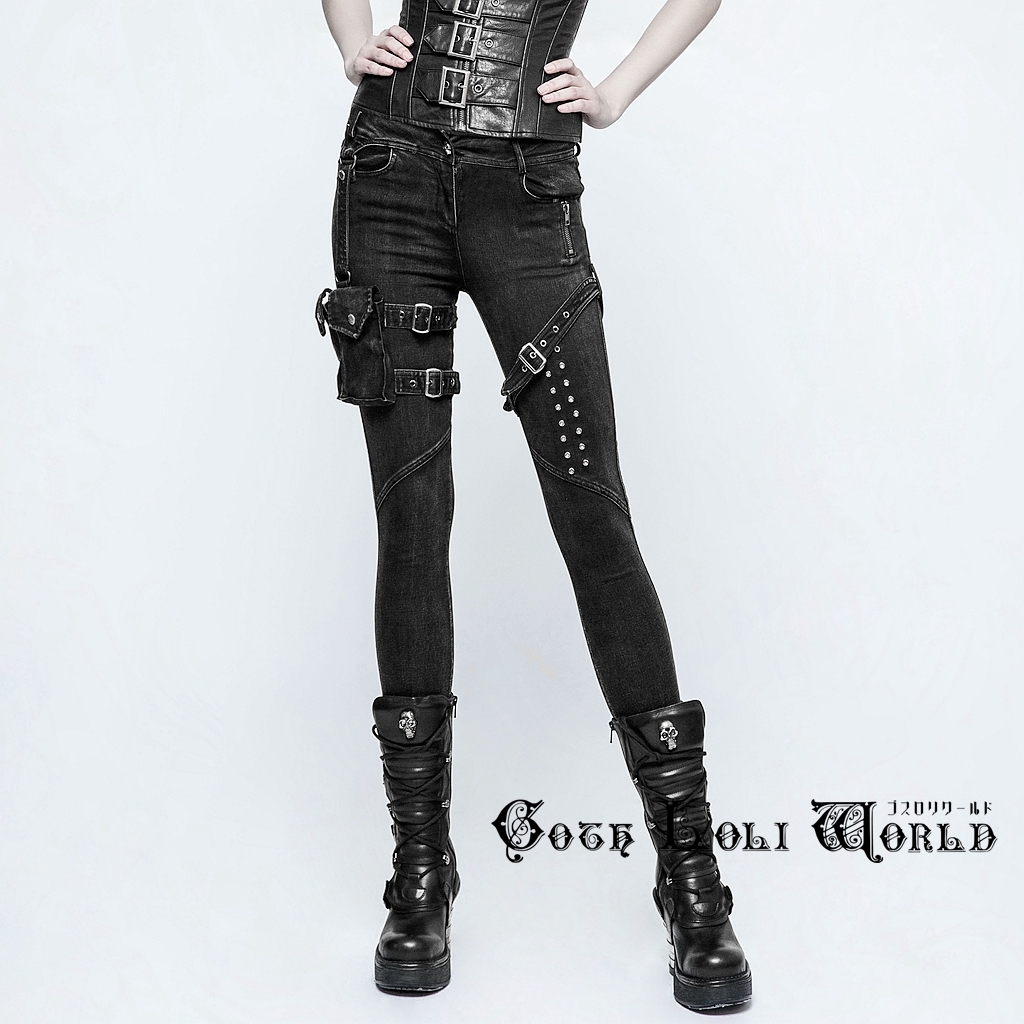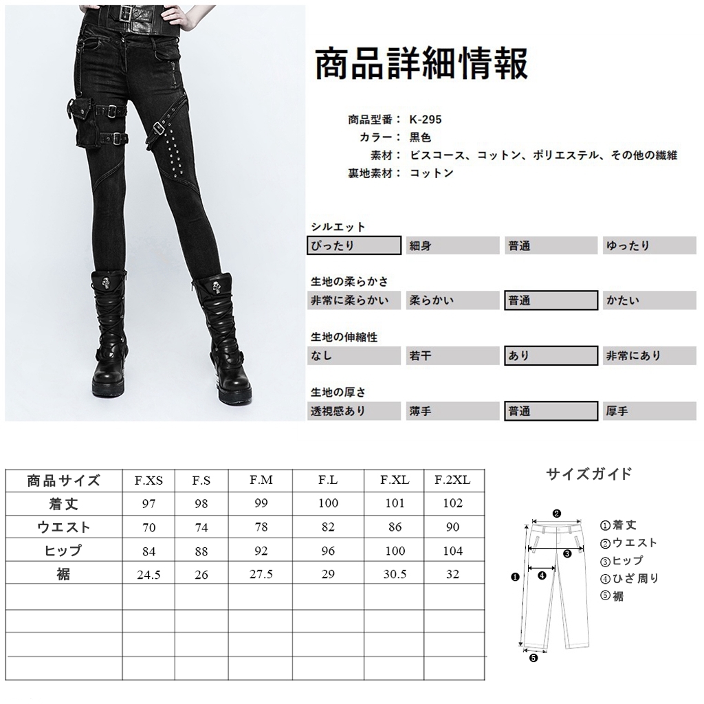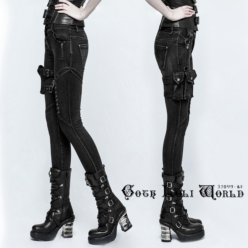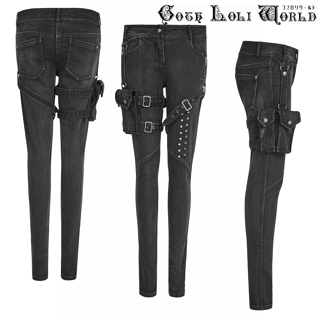 即納 K-295BK-L パンク ロック ファッション レッグホルスター付スキニー デニム ロングパンツ ゴシック V系 個性的 ライブ衣装