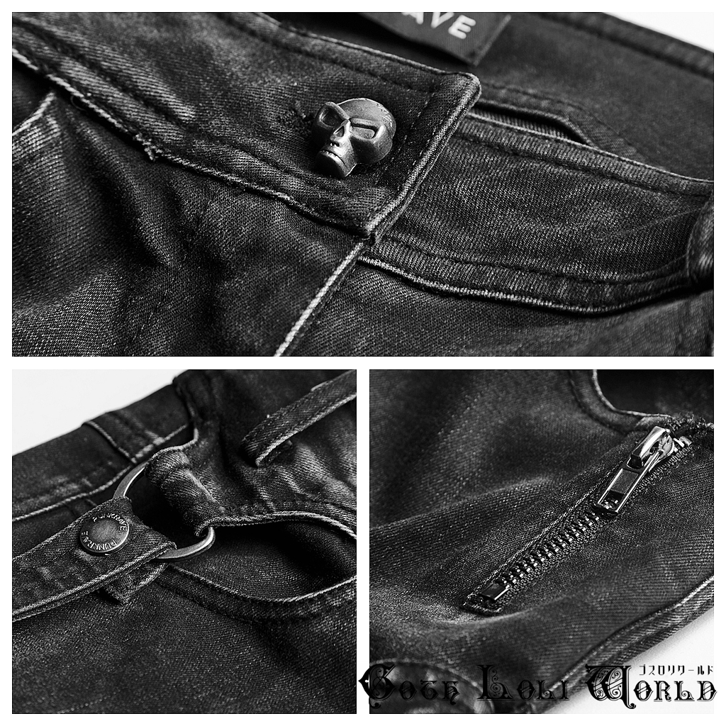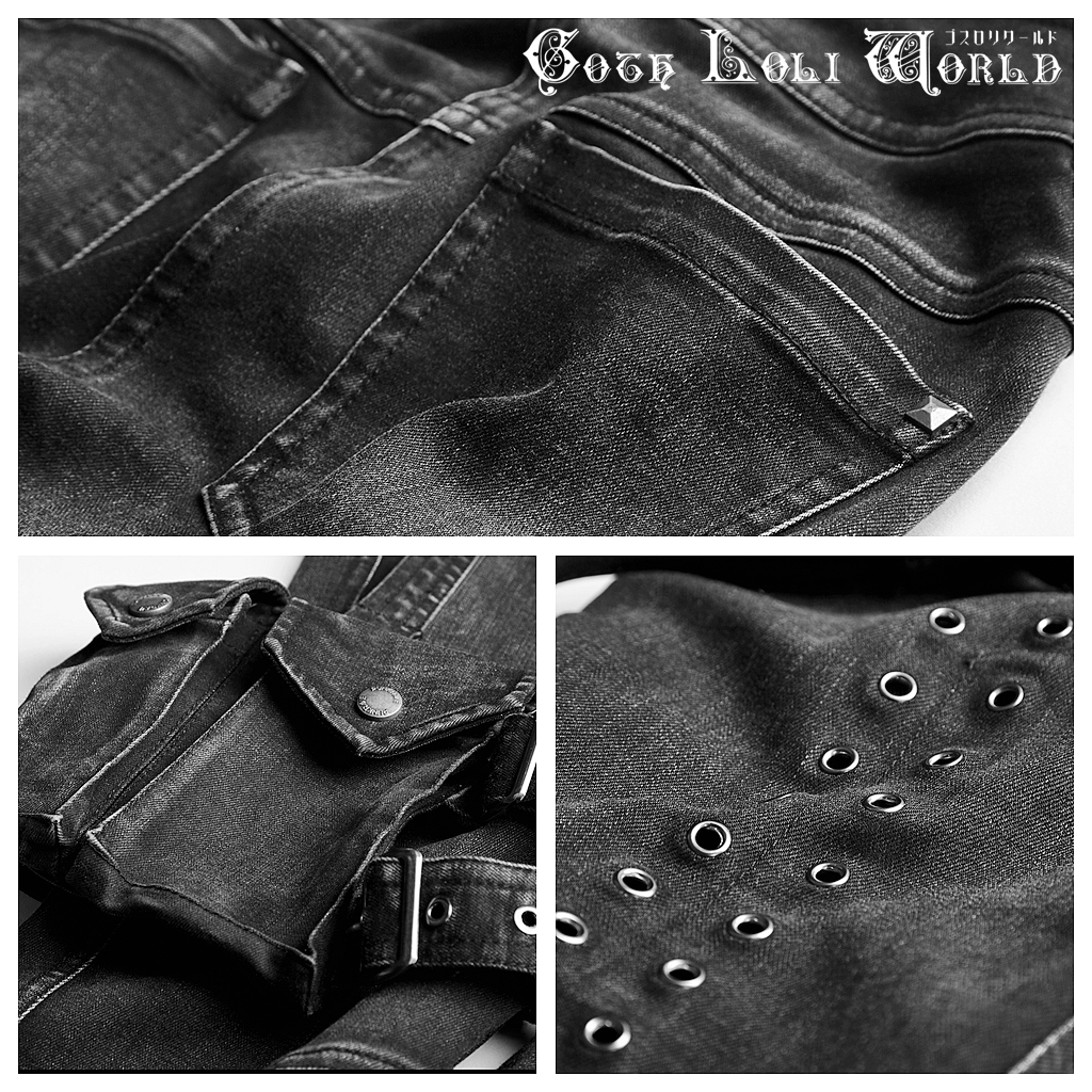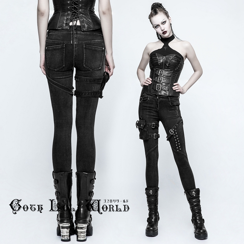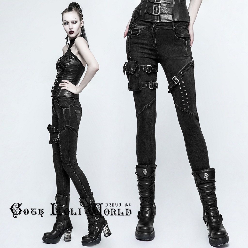即納 K-295BK-L パンク ロック ファッション レッグホルスター付スキニー デニム ロングパンツ ゴシック V系 個性的 ライブ衣装