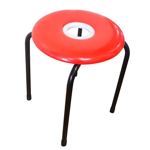 積み重ねができて持ちやすい日本製のドーナツ型丸イス(カラー・赤)です。