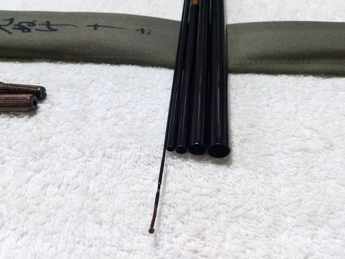 付属品は画像の通り、オリジナルの竿袋、口栓(紐で繋がっています)になります。竿の状態ですが、口割れ、欠け、深い傷などなく綺麗です。薄い傷が少し有りますが、艶もあり良い状態だと思います。私感的には綺麗な状態だと思います。知人の委託品の為、隅々までよく見てませんのでジャンク品でお願いします。オークション終了後48時間以内にご連絡の方のみご入札下さい。落札後取り引きナビにてご連絡させて頂きます。知人の委託品の為、ご入札後のキャンセル、返品。クレーム等受されない方のみ入札お願いします。送料はヤマト運輸の元払いで、九州から関東まで1600円です。宜しくお願いします。