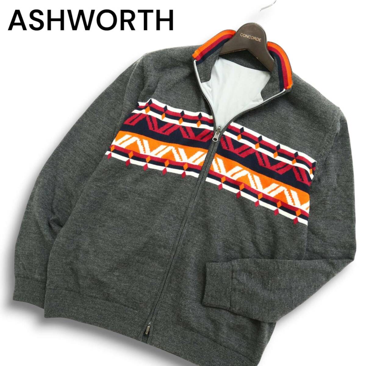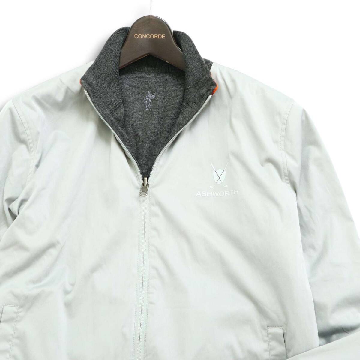 ASHWORTH アシュワース ゴルフ 秋冬 2WAY リバーシブル★ ウール混 ニット ブルゾン ジャケット Sz.M メンズ グレー